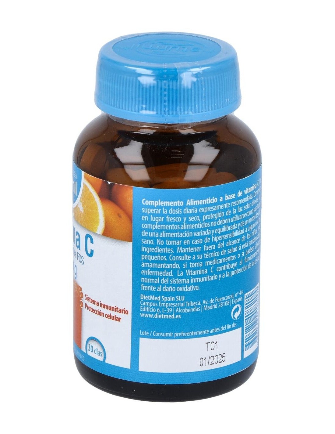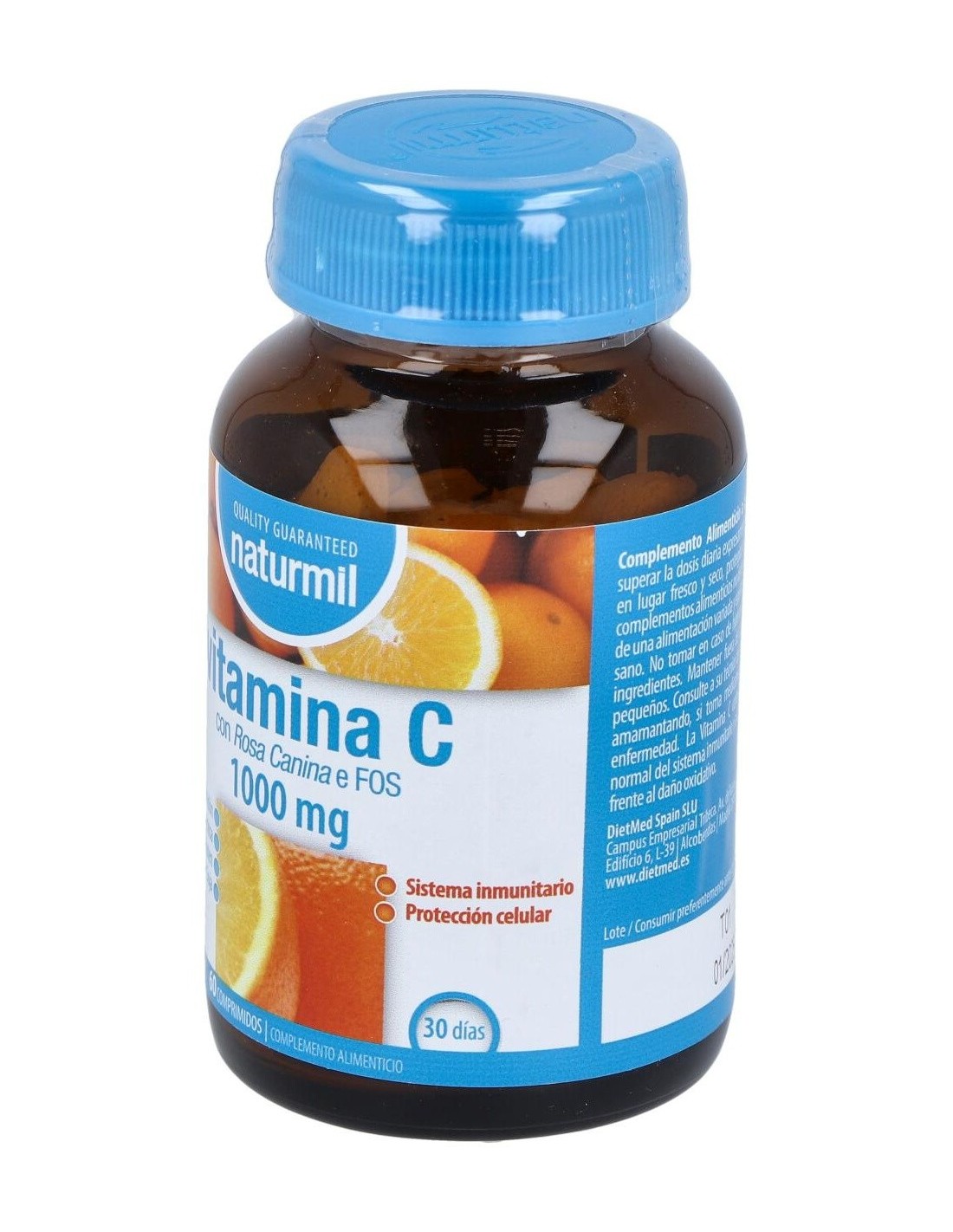 Vitamina C 1000Mg. 60Comp. de Dietmed es un suplemento diseñado para personas que buscan complementar su ingesta diaria de vitamina C de manera práctica y dosificada. Es adecuado para quienes desean mantener un aporte constante de este nutriente esencial dentro de su rutina diaria.
