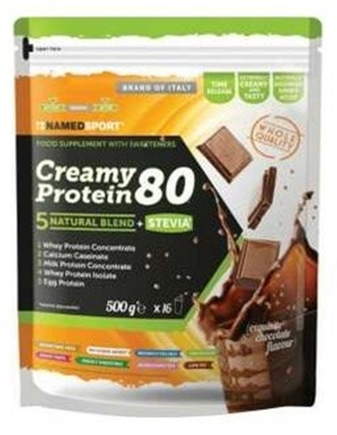 NAMED SPORTCreamy Protein 80, exclusiva mezcla basada en 5 fuentes naturales de proteínas de diferente velocidad de absorción, Protein Creamy 80 promueve el mantenimiento de la masa muscular con una ingesta reducida de azúcares y grasas. Esta formulación es particularmente adecuada para satisfacer las necesidades de proteínas antes o después del ejercicio. Naturalmente rico en aminoácidos de cadena ramificada, también ayuda a prevenir el catabolismo muscular y gracias a una cremosidad extraordinaria y un alto poder saciante, es un aliado ideal en las dietas bajas en calorías. Con edulcorante natural (glucósidos de esteviol).