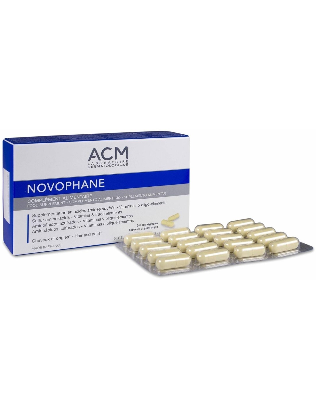 Novophane 60Cap. de Acm Laboratoires es un complemento diseñado para personas que buscan apoyar la salud capilar mediante una fórmula equilibrada y adecuada para el uso diario. Está pensado para quienes desean mantener una rutina de cuidado integral con ingredientes seleccionados para contribuir al bienestar del cabello.