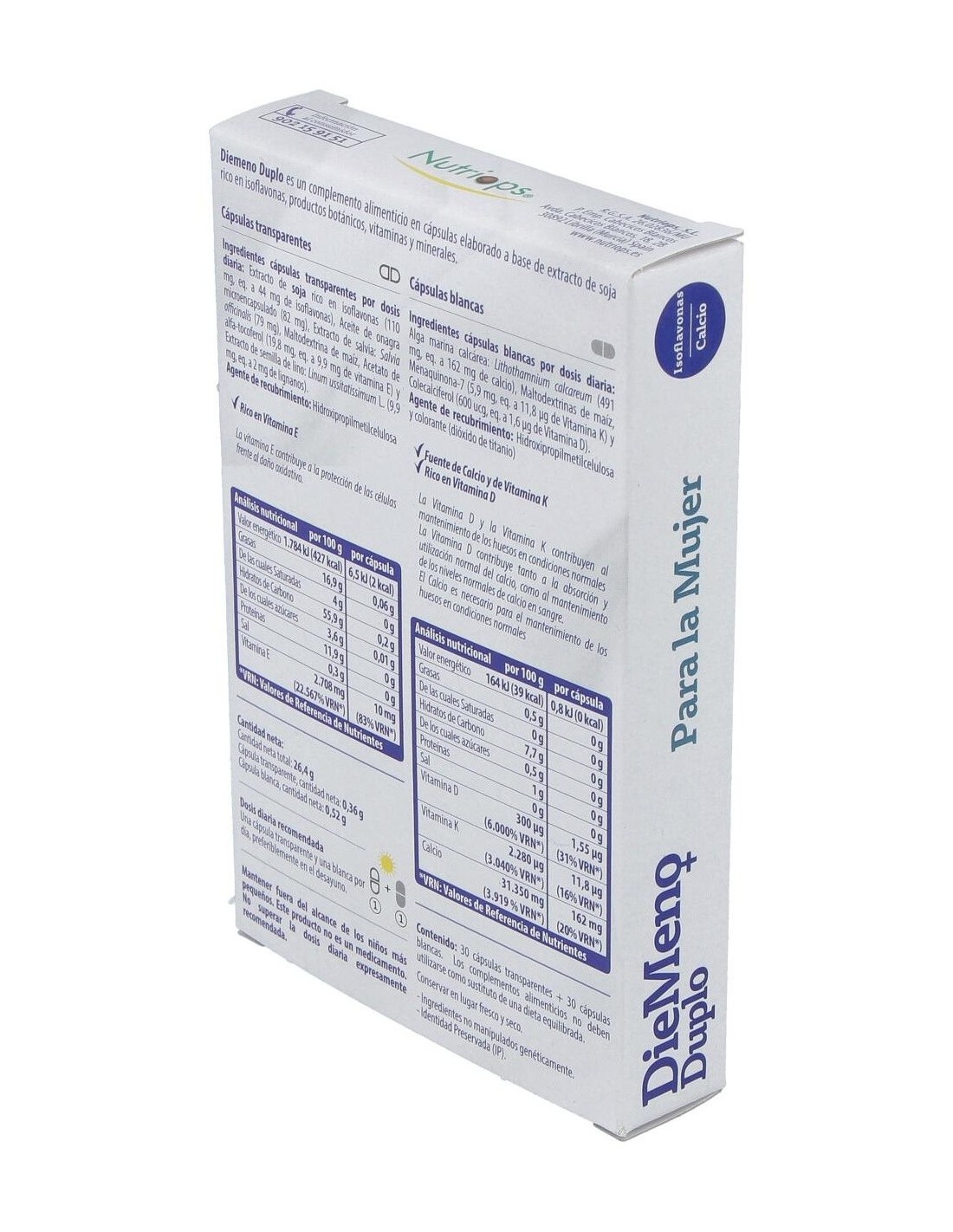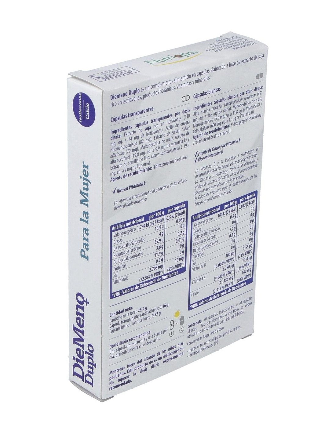 Diemeno Duplo - Cápsulas entéricas Ricas en Isoflavonas, con Calcio de Nutriops