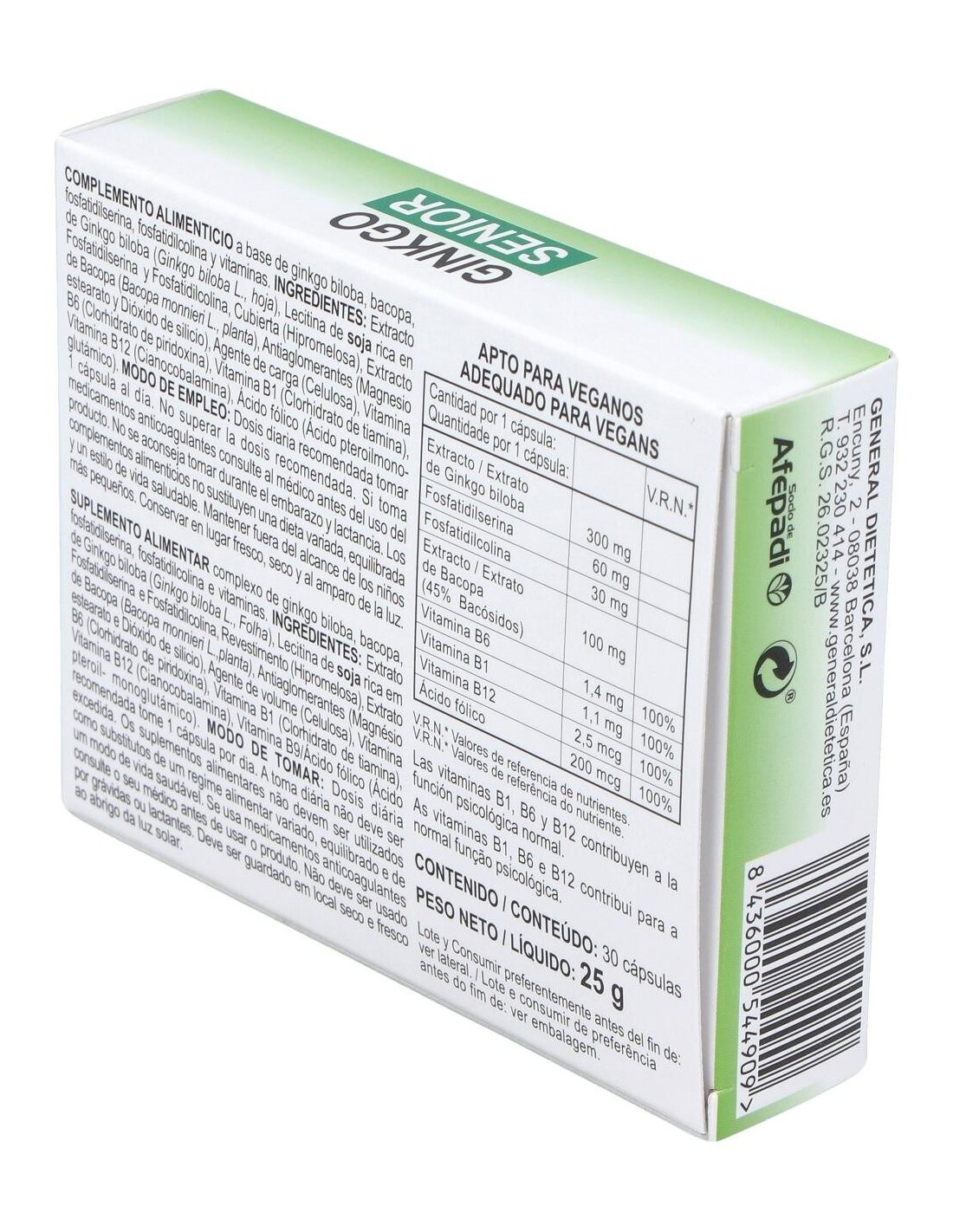 - Contiene extracto estandarizado de Ginkgo biloba, reconocido por su composición que contribuye a la circulación sanguínea y al mantenimiento de funciones cognitivas normales.