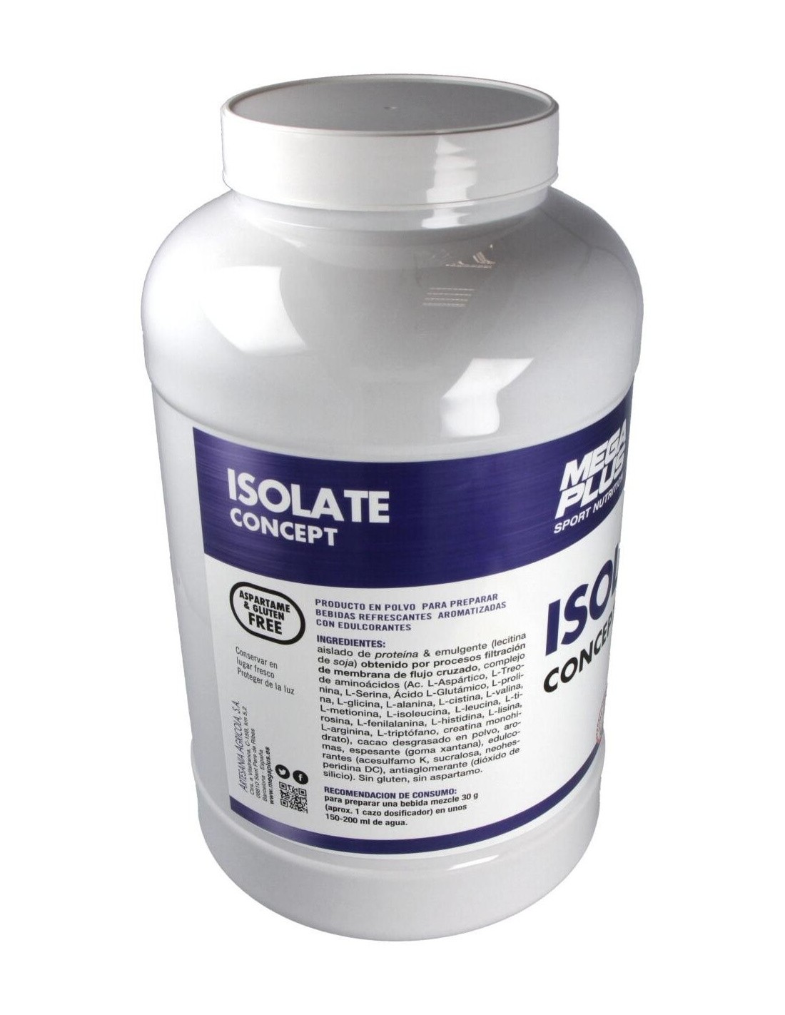 El Isolate Concept Chocolate 2Kg de Mega Plus es un suplemento proteico para deportistas que aporta proteína aislada de alta pureza, facilitando una recuperación muscular eficiente tras el entrenamiento.