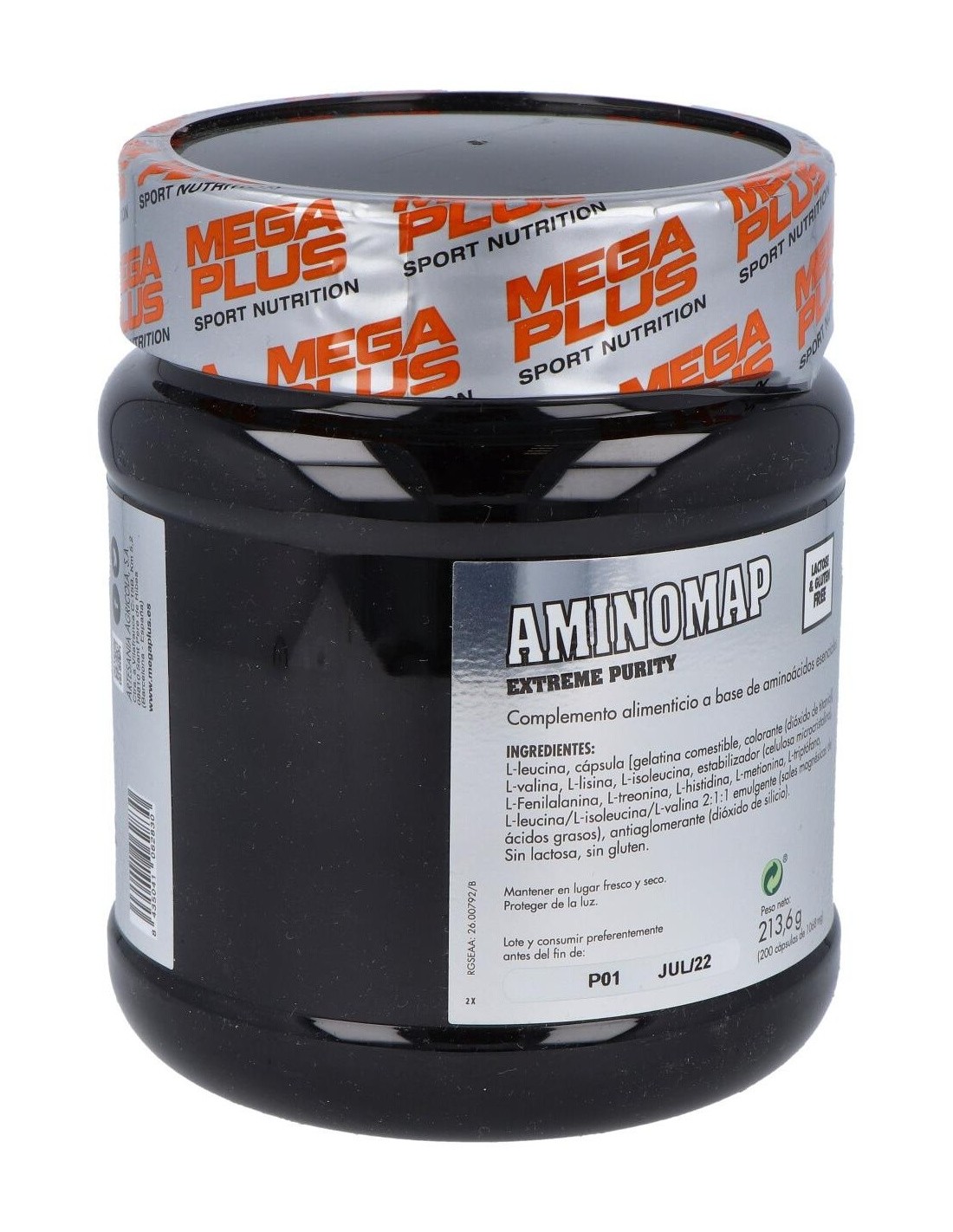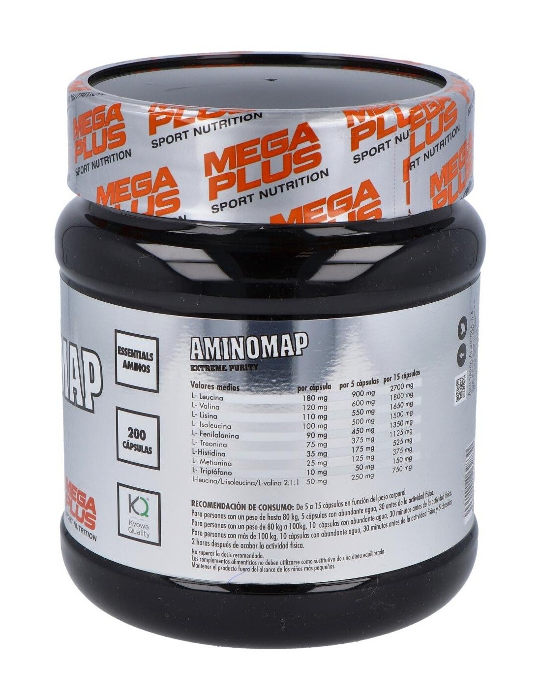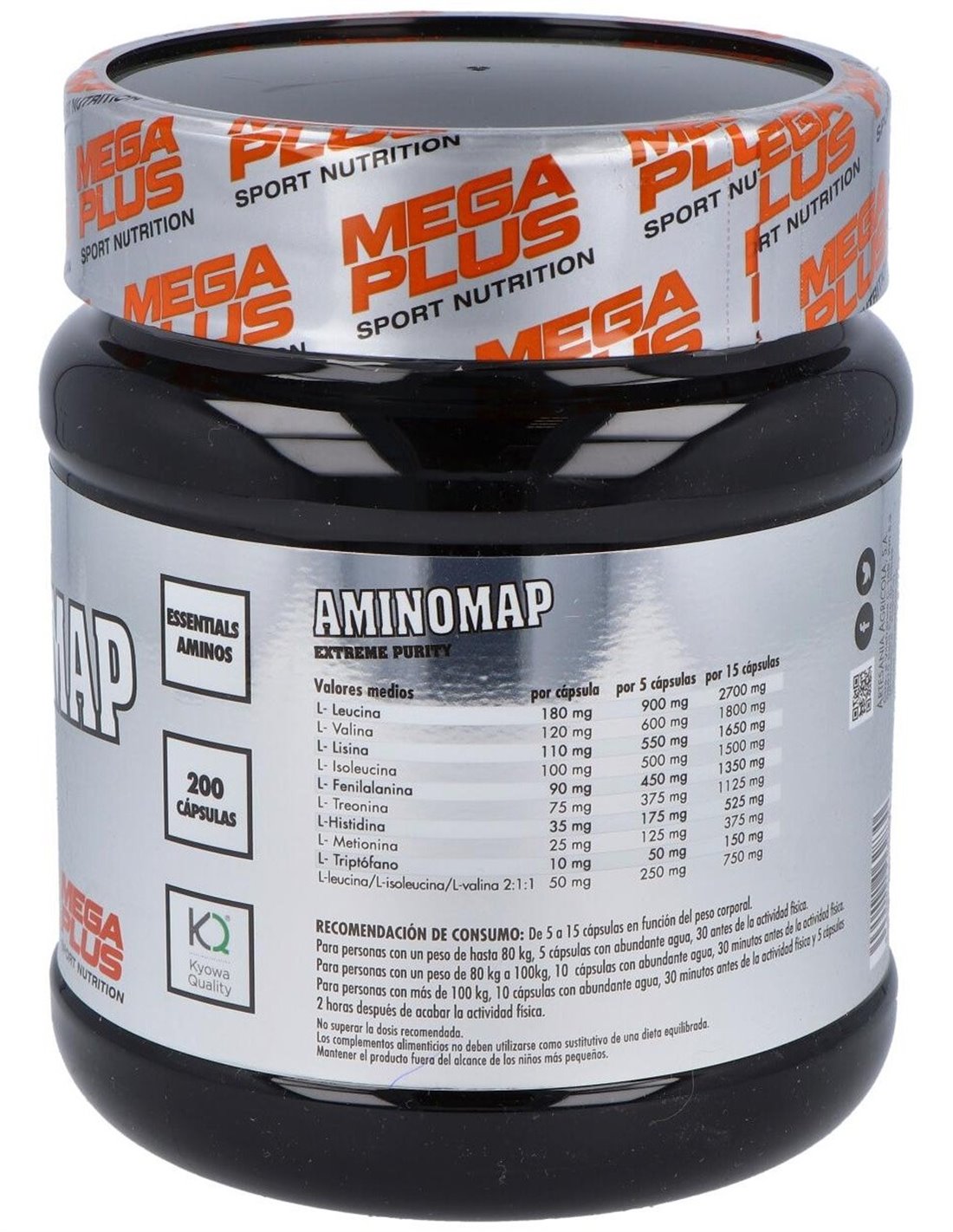 Aminomap 200Cap. Extreme Purity de Mega Plus es un suplemento de aminoácidos para personas activas. Proporciona soporte nutricional con fórmula de alta pureza para favorecer la recuperación muscular y el bienestar general.