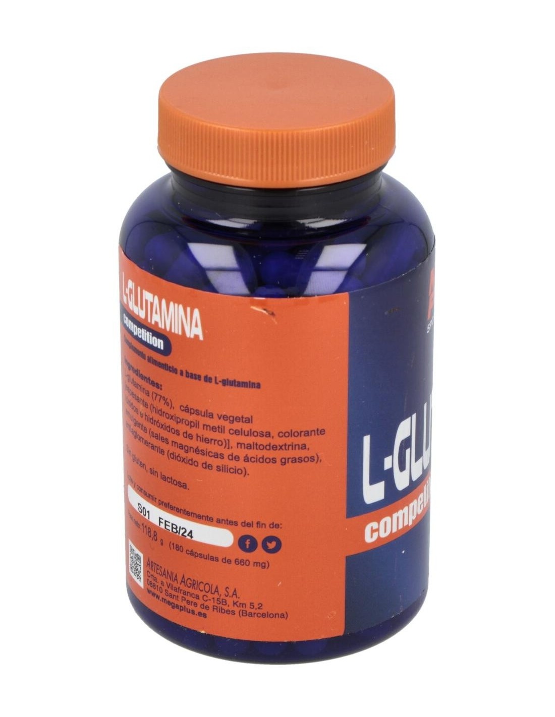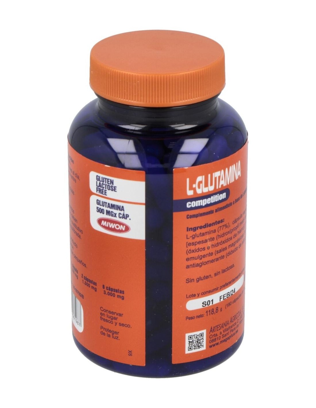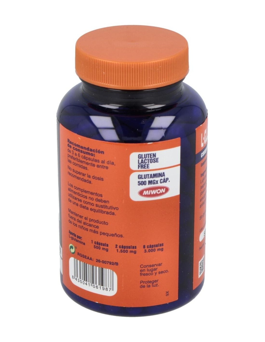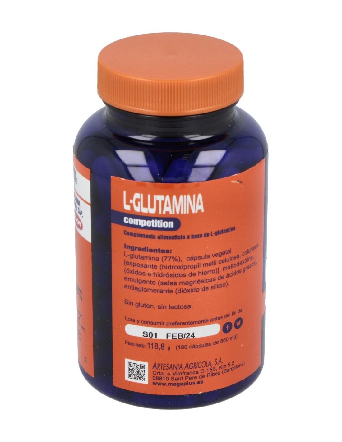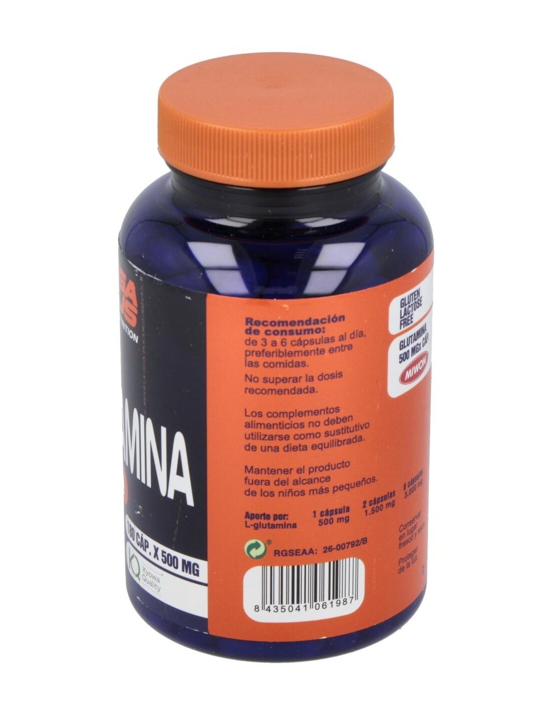 Cápsulas ricos en glutamina, que es un aminoácido no esencial aunque muy importante para la pronta recuperación del organismo tras largos periodos de entrenamiento intenso. Ayuda a metabolizar las proteínas y previene el catabolismo muscular.
