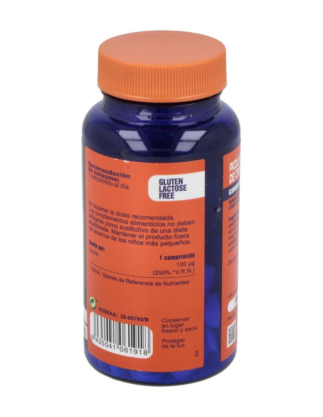 - Cada comprimido contiene 100 microgramos de cromo en forma de picolinato, facilitando su absorción.