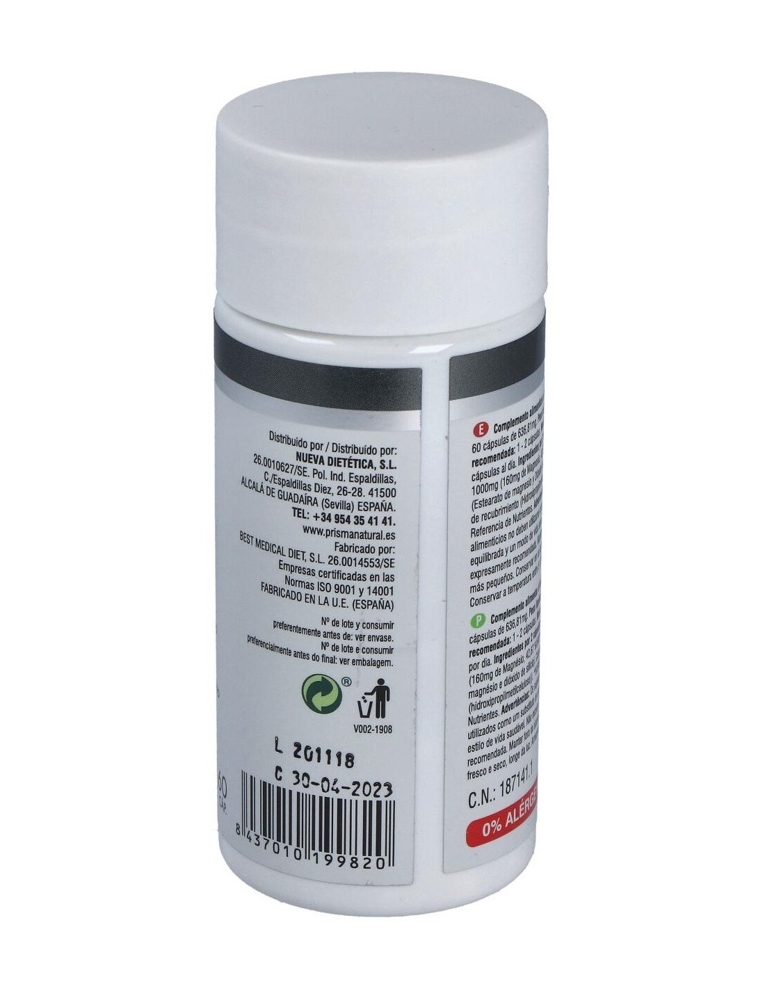 Magnesio 60Cap. de Prisma Natural ofrece una opción práctica para complementar la dieta con magnesio, contribuyendo a mantener un equilibrio adecuado en la ingesta de este mineral.