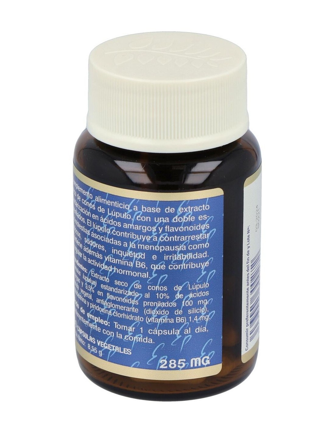 - Contiene extracto de lúpulo, reconocido por su composición natural que contribuye a mantener el equilibrio hormonal femenino.