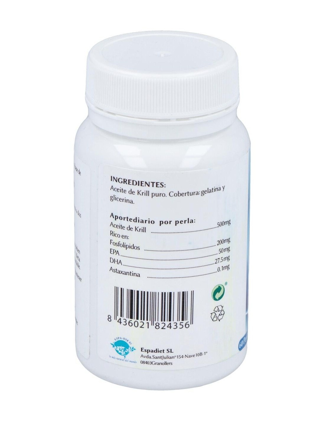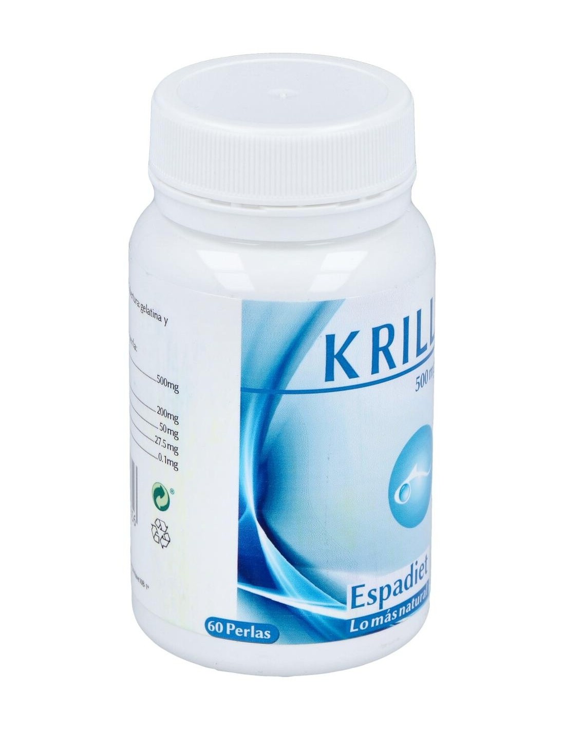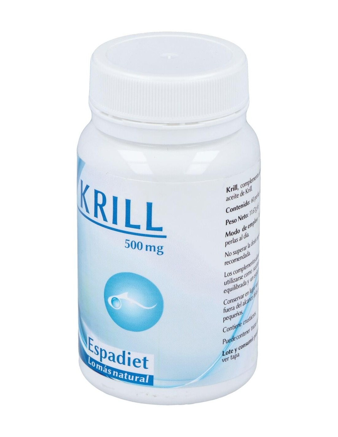 El Krill 500 Mg. 60Perlas de Espadiet es un suplemento nutricional para adultos que aporta ácidos grasos omega-3, facilitando el mantenimiento del bienestar general mediante su fórmula concentrada en aceite de krill.