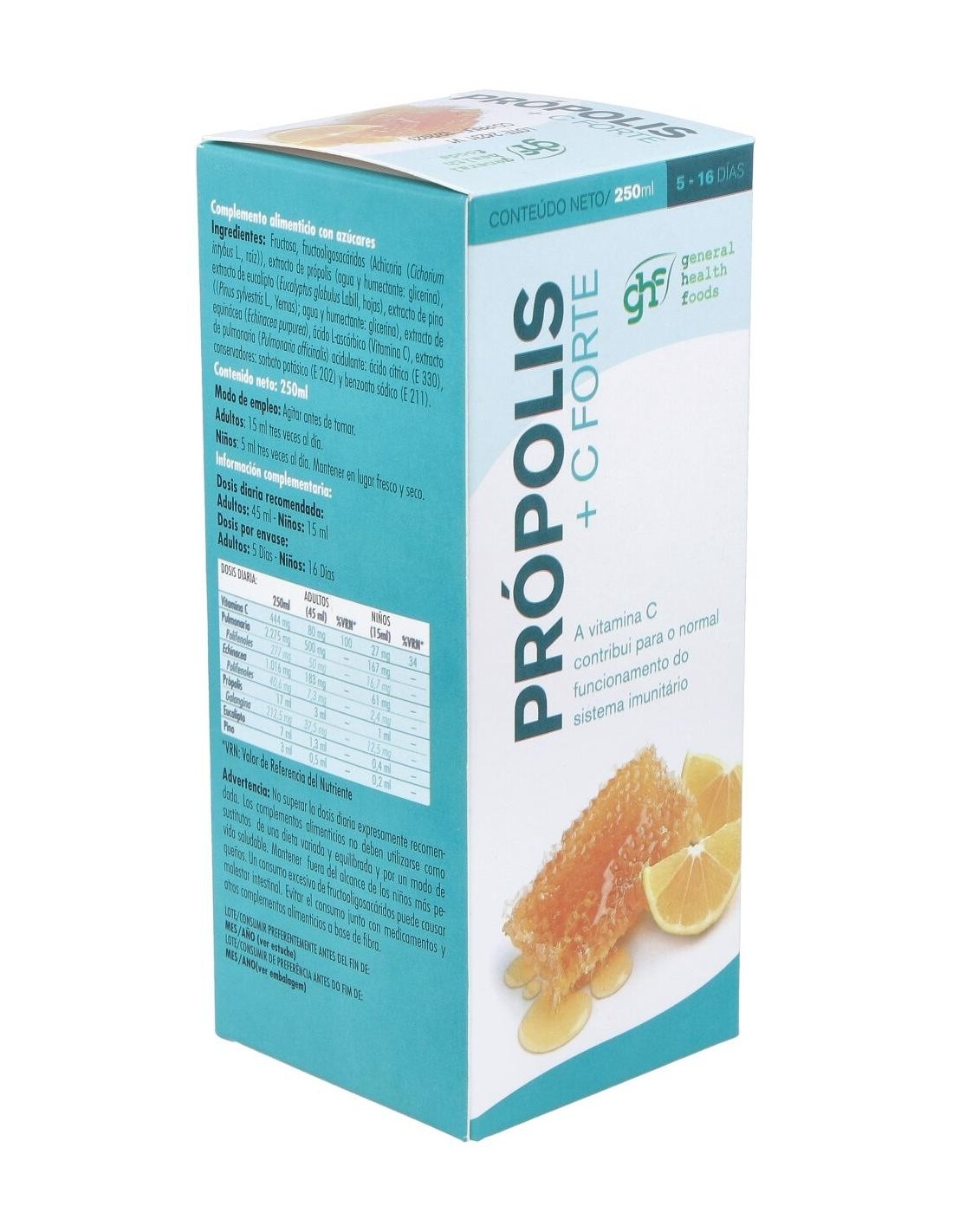 Propoleo + Vit. C Jarabe 250Ml. de Ghf es un complemento líquido diseñado para personas que buscan apoyar su bienestar diario mediante ingredientes naturales. Su formulación combina extractos de propóleo con vitamina C, pensada para quienes prefieren opciones en jarabe para facilitar su consumo.