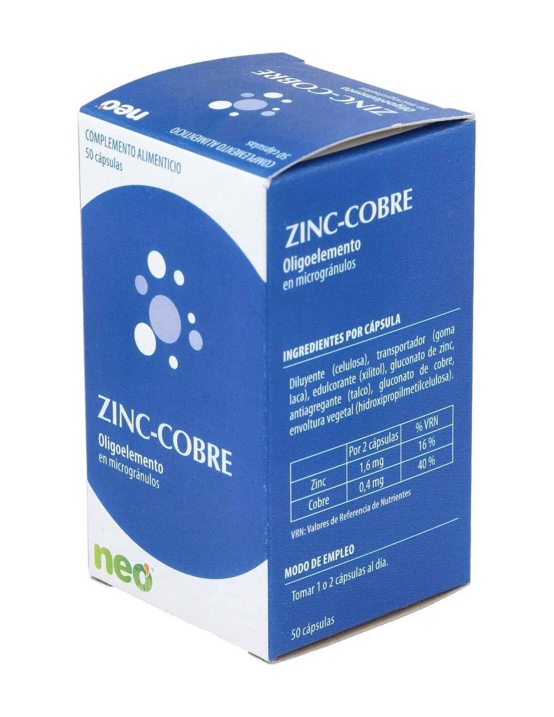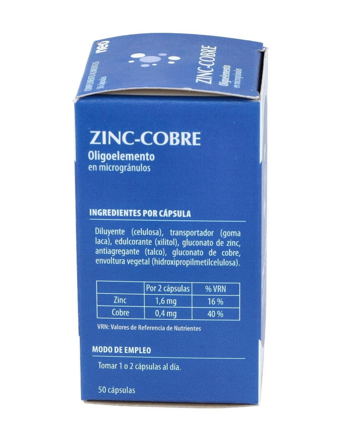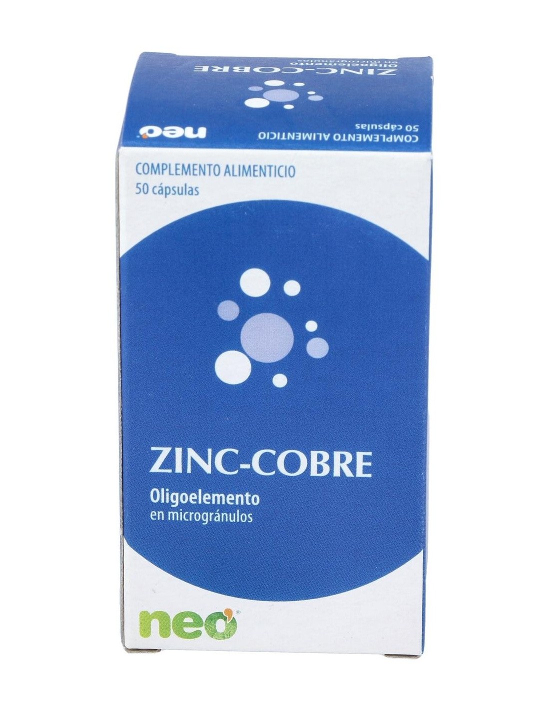 Zinc-Cobre Microgranulos Neo 50Cap. de Neo ofrece una opción accesible para complementar la dieta con zinc y cobre, contribuyendo a mantener un equilibrio mineral adecuado.