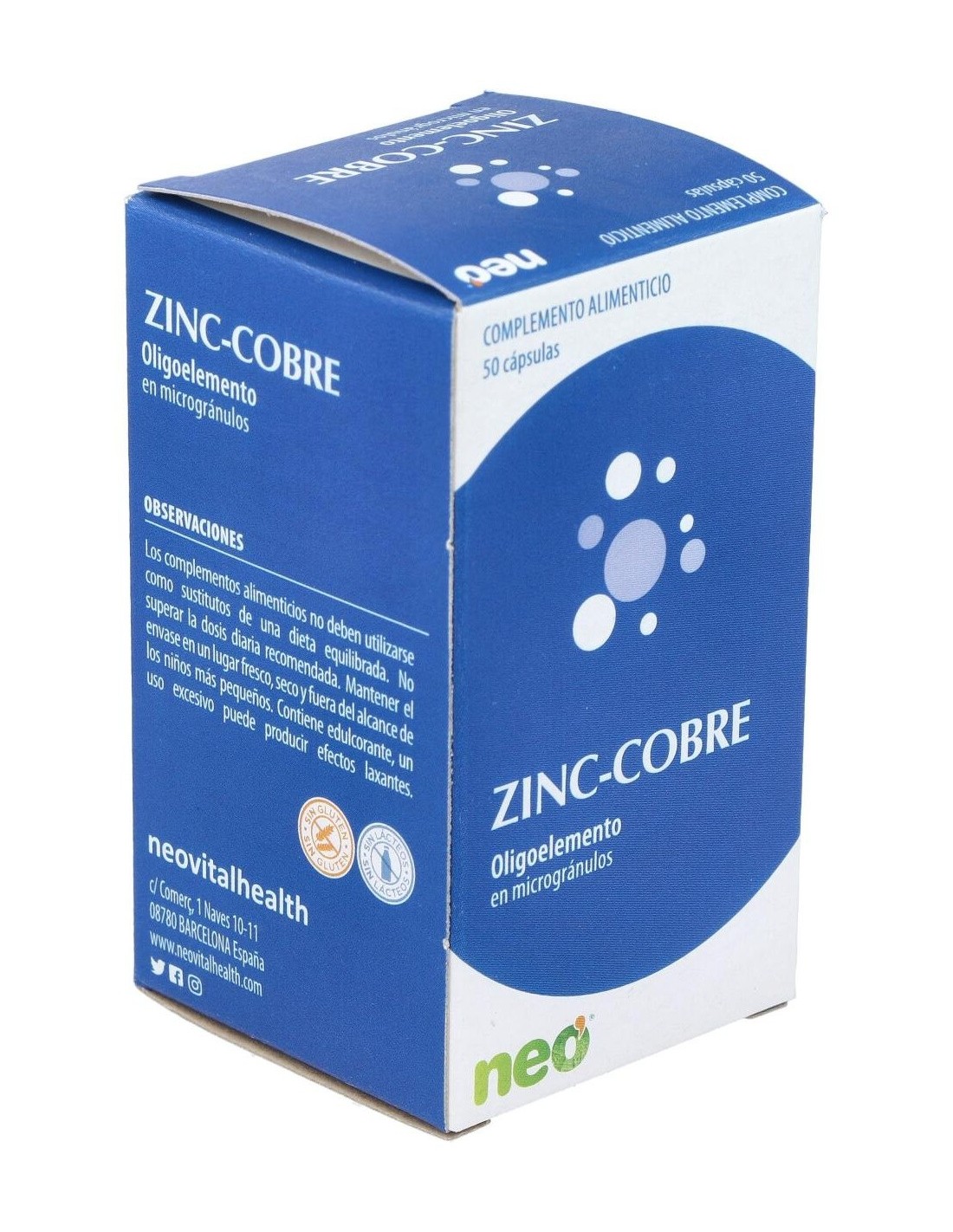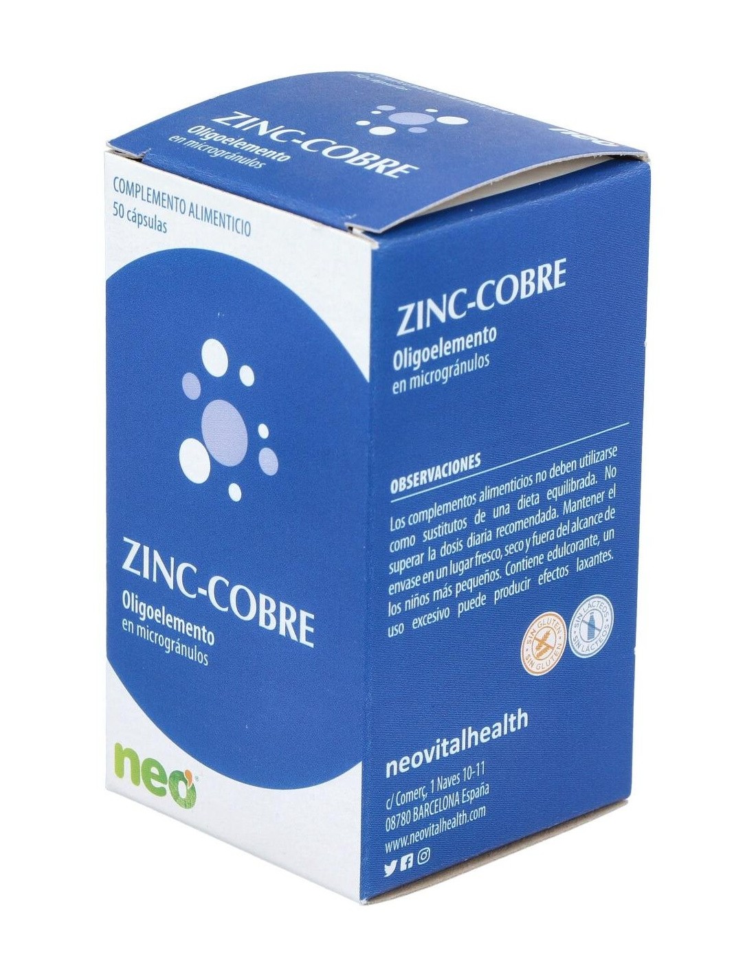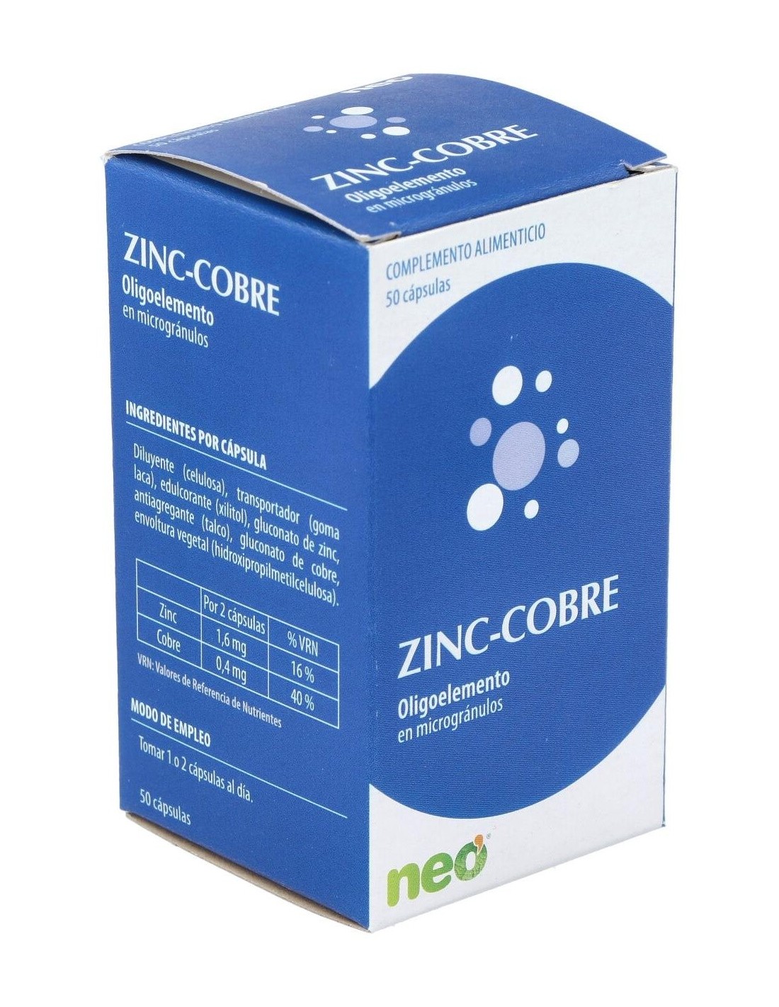 Zinc-Cobre Microgranulos Neo 50Cap. de Neo ofrece una opción accesible para complementar la dieta con zinc y cobre, contribuyendo a mantener un equilibrio mineral adecuado.