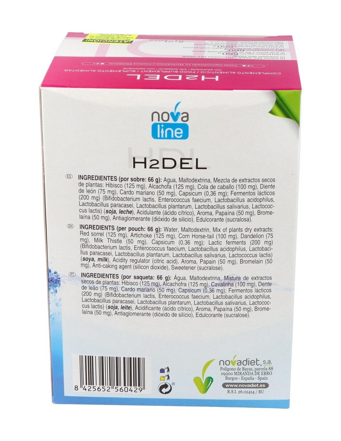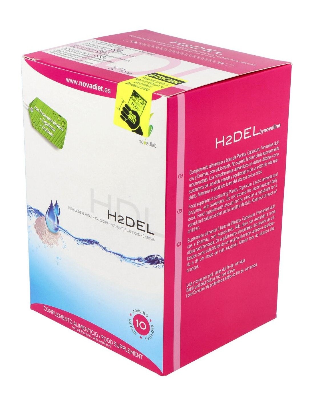 H2Del Envase de 10 sobres de Novadiet ofrece una opción práctica y funcional para quienes buscan complementar su rutina diaria con un producto de fácil manejo y dosificación.
