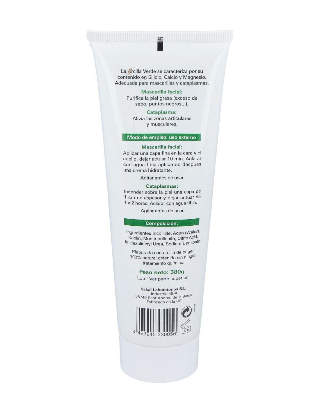 El Arcilla Verde Tubo 380Gr de Sakai es un producto pensado para personas que buscan una opción natural para el cuidado de la piel, especialmente indicado para quienes desean una limpieza profunda y un efecto refrescante. Su formulación está diseñada para integrarse fácilmente en rutinas de cuidado facial y corporal.