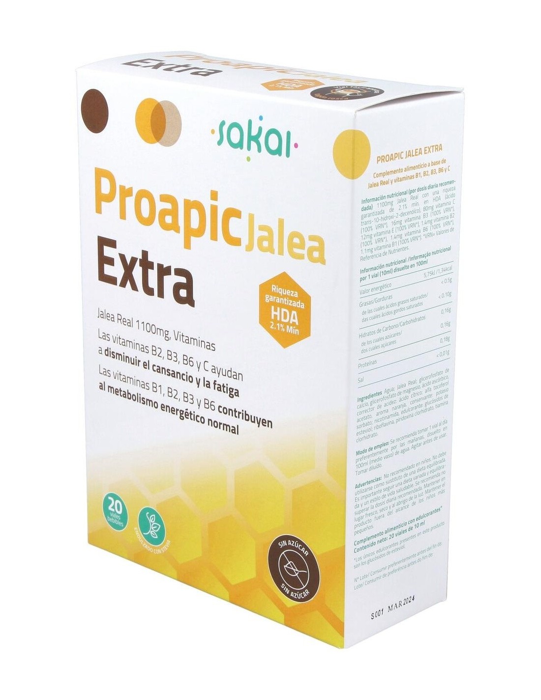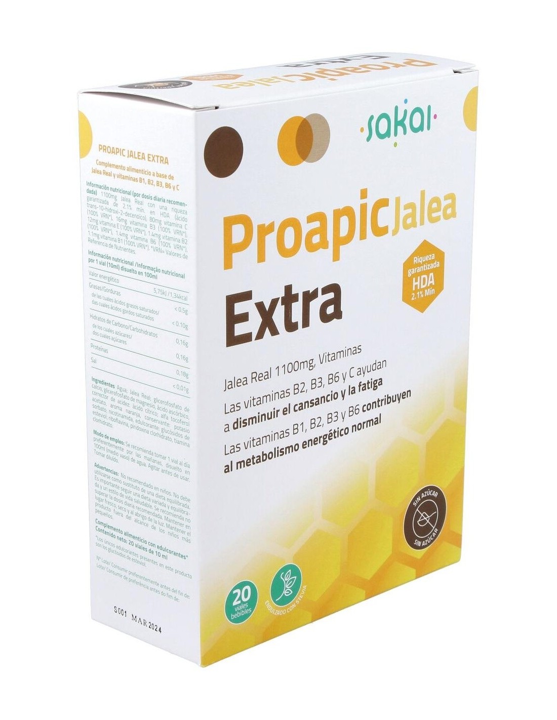 Proapic Jalea Real Extra 20Amp. de Sakai ofrece una forma práctica y accesible de incluir jalea real en la dieta diaria, adaptándose a diferentes estilos de vida.