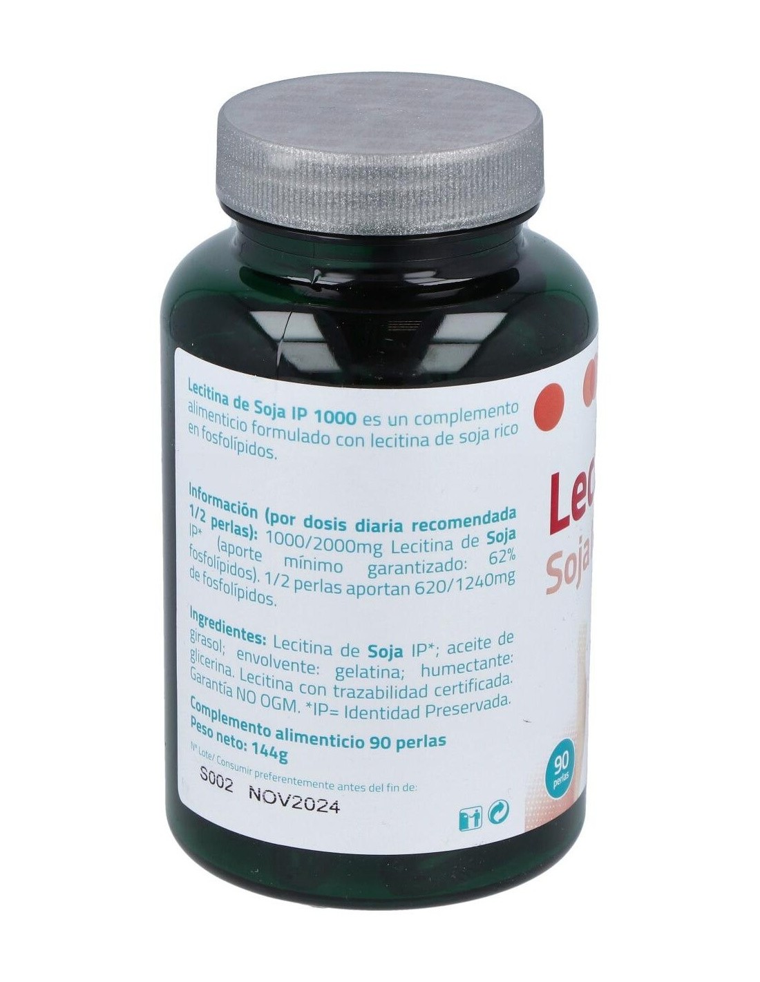 - Contiene 90 perlas de lecitina de soja con concentración Ip 1000, facilitando una dosificación práctica y cómoda.