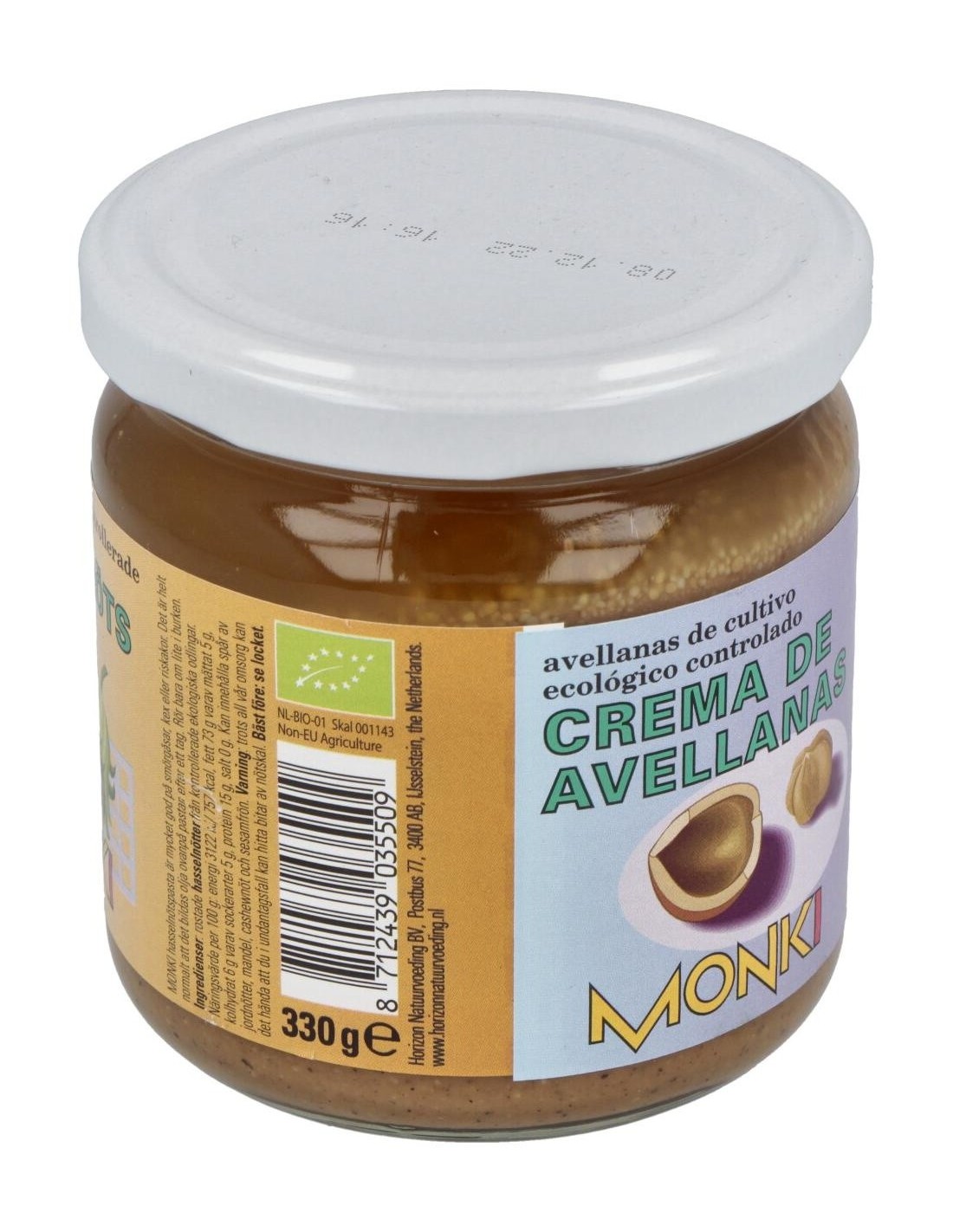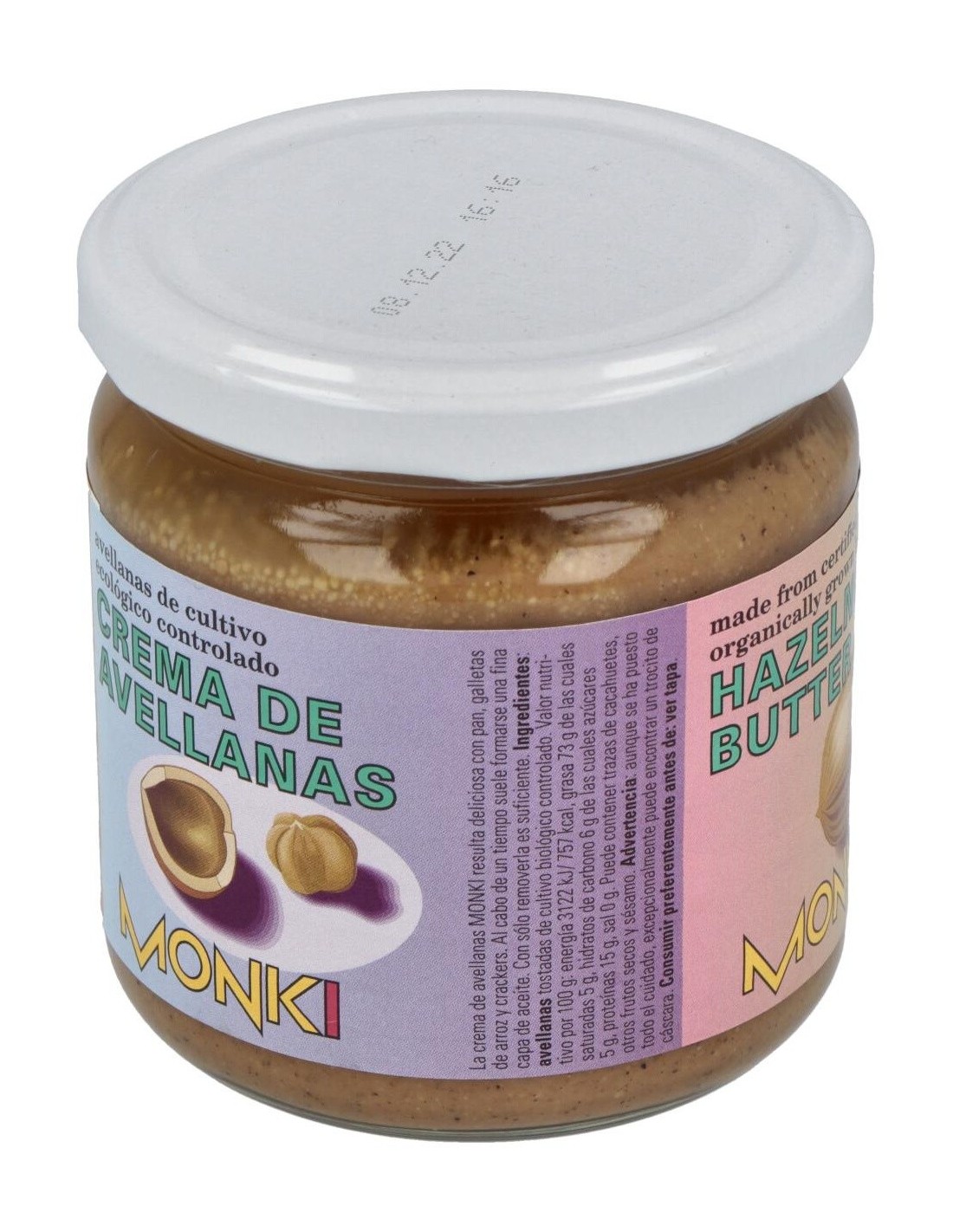 Ingredientes:Avellanas tostadas*. (*) Ingrediente procedente cultivo ecológico controlado.Valor nutricional por 100 gramos: