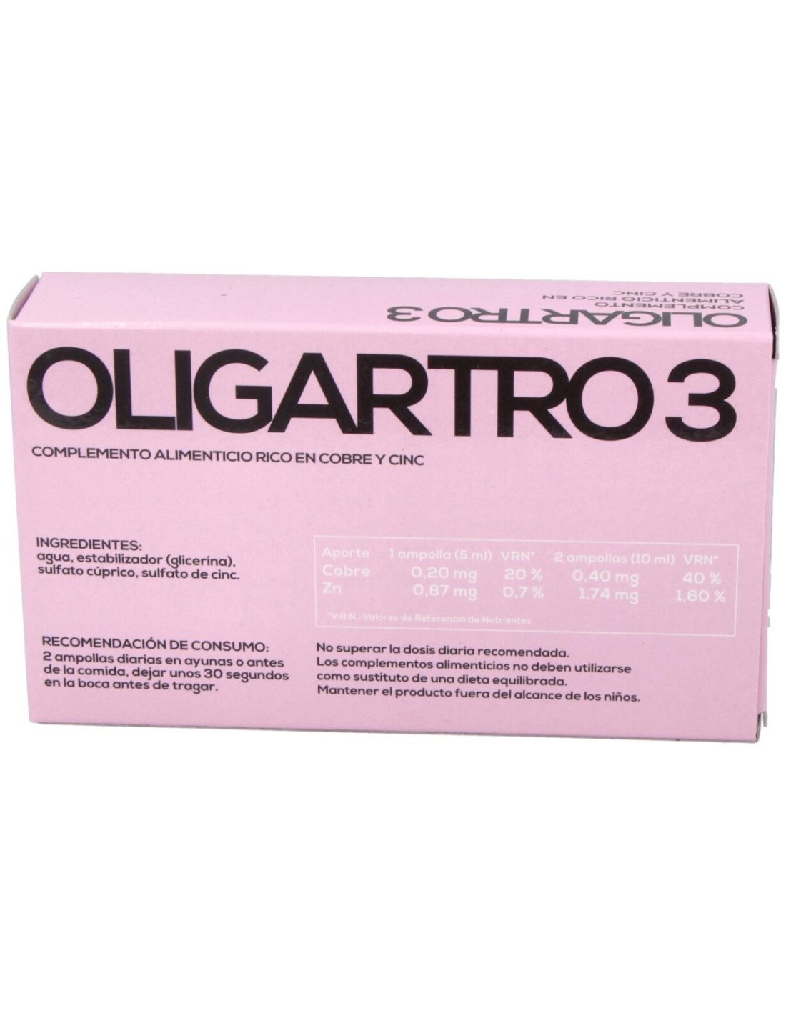 Suplemento en ampollas rico en zinc y cobre.