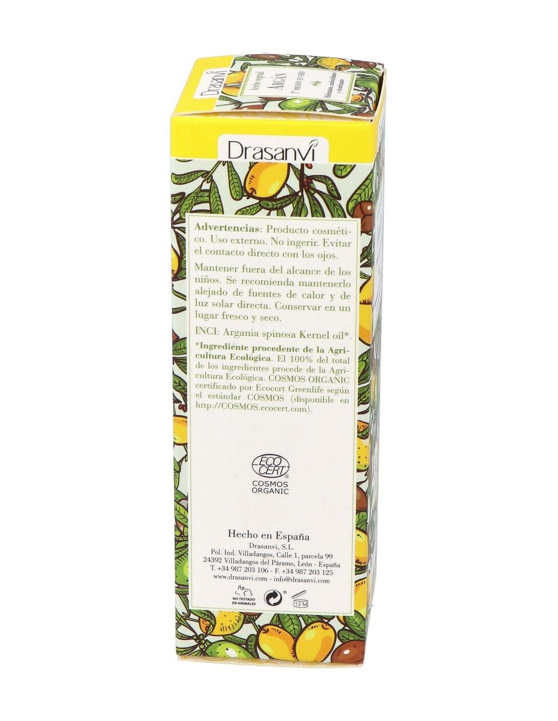 El aceite vegetal Argán de Drasanvi, proviene de seleccionados cultivos biológicos de Marruecos, donde se le conoce como oro líquido. Con el fin de crear una excelente sintonía con tu piel, utilizamos la 1ª presión en frío como único modo de extracción, con el fin de conservar todas las propiedades naturales del Argán. El aceite vegetal de Drasanvi, posee el sello Ecocert. Esta certificación de calidad francesa asegura de forma clara el concepto de cosmética biológica proporcionado al consumidor una garantía de seguridad, ecología y salud. Esta certificación asegura que no se han utilizado materias primas sintéticas o nocivas para la piel durante el proceso de fabricación, que no se han testado en animales, que los productos no contienen sustancias tóxicas de ningún tipo, y que han pasado en todo momento estrictos controles de calidad por parte de un organismo independiente. El aceite de argán Drasanvi contiene una alta concentración de ácidos grasos insaturados y vitamina E, rico en beta-carotenoides, escualeno y fitosteroles. Sustancias efectivas para restaurar la elasticidad, vitalidad y tonificación de la piel. Estas propiedades incluyen: