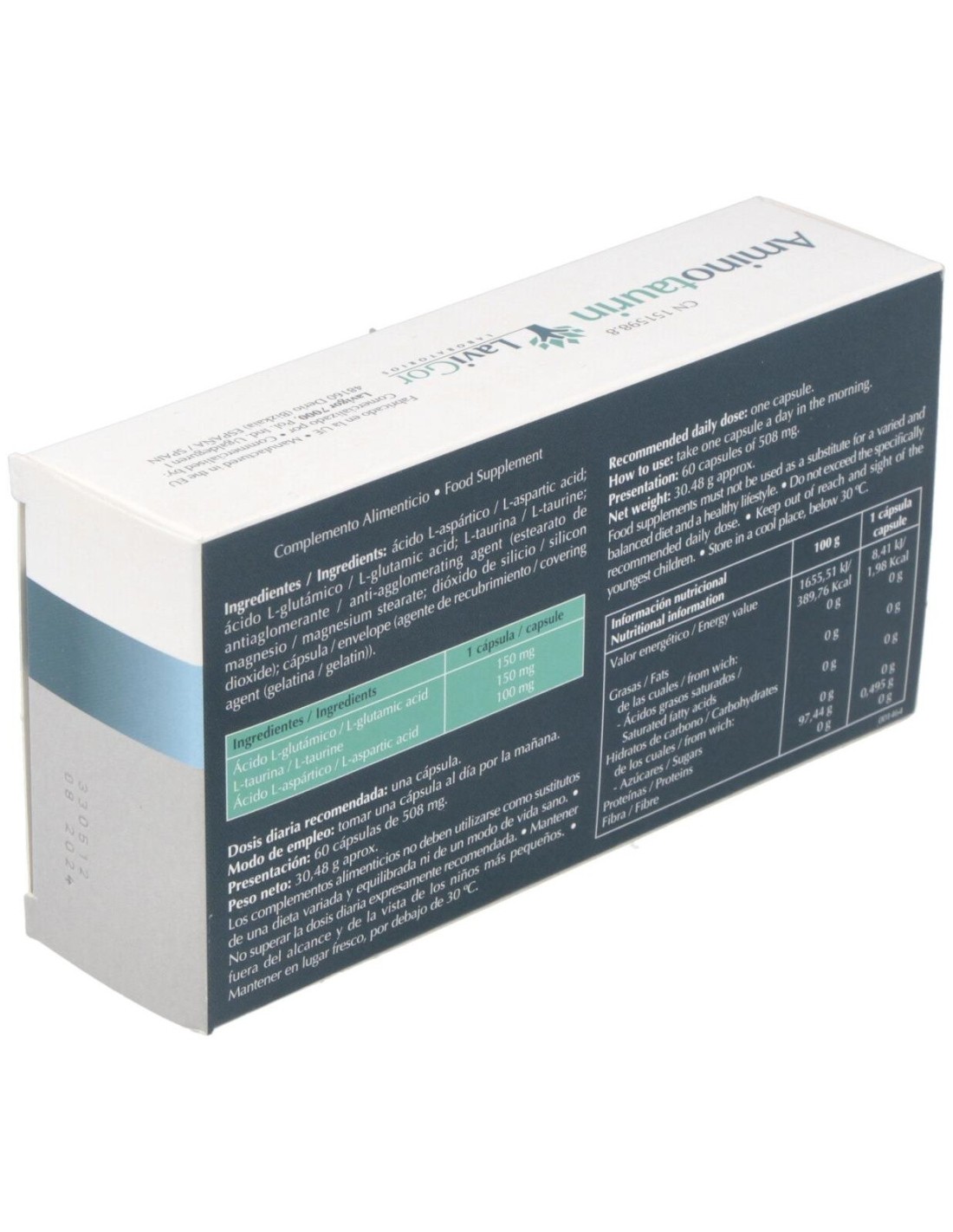 Taurina, 150 mg: ácido glutámico, 150 mg: ácido aspártico, 100 mg.