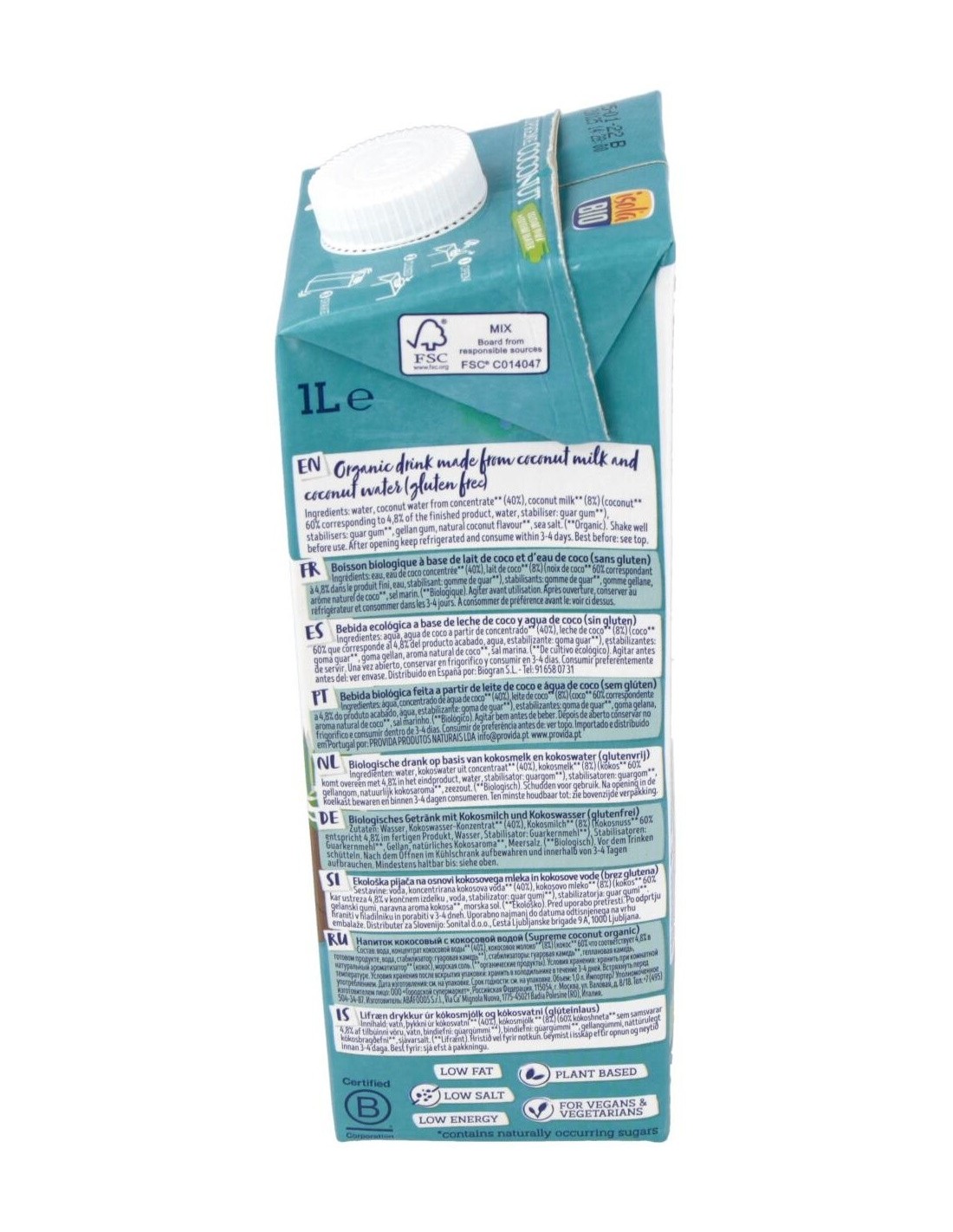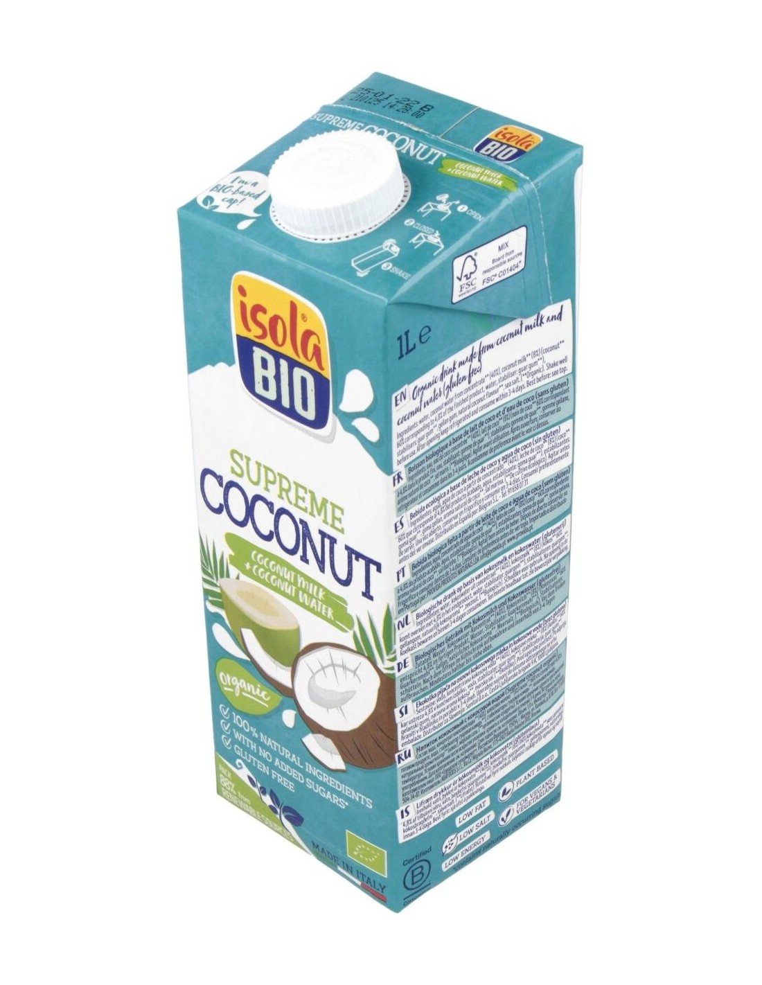 La Bebida Vegetal De Coco Supreme 1Lt de Isola es una bebida vegetal para personas que buscan una alternativa natural y ligera. Ofrece sabor suave y textura cremosa gracias a su elaboración con coco seleccionado.