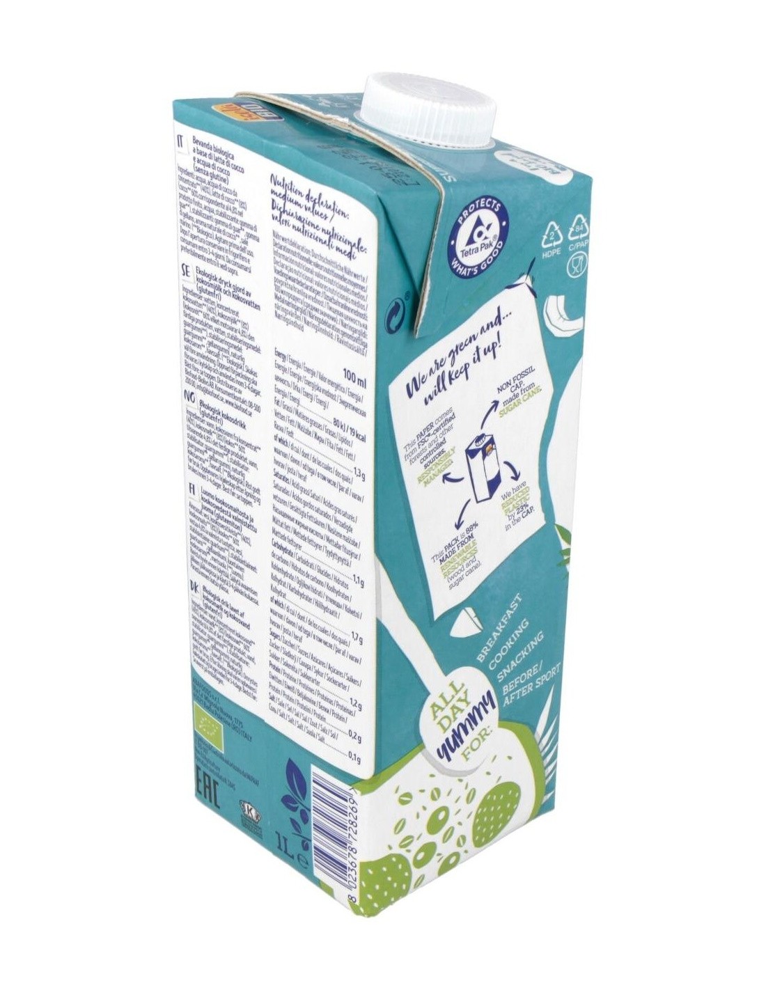 - Elaborada a base de coco, aporta un sabor suave y natural que complementa tanto bebidas como recetas culinarias.