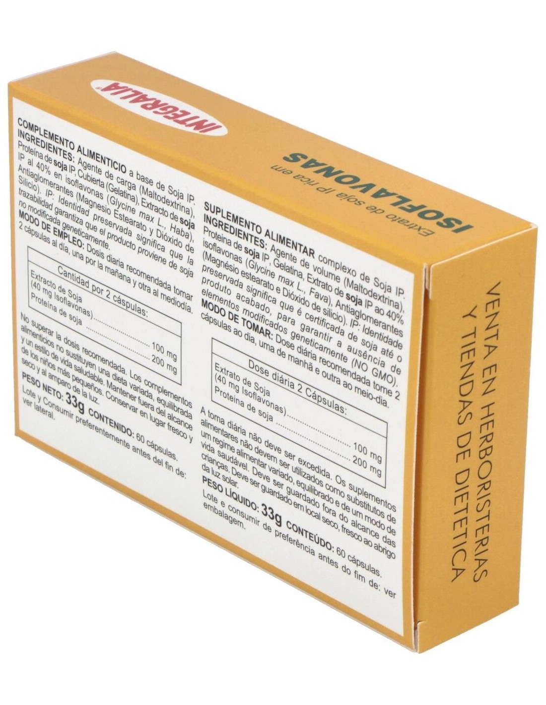 Isoflavonas 60Cap. de Integralia es un suplemento para personas que buscan apoyo en el bienestar hormonal, que aporta isoflavonas derivadas de soja para complementar la dieta diaria.