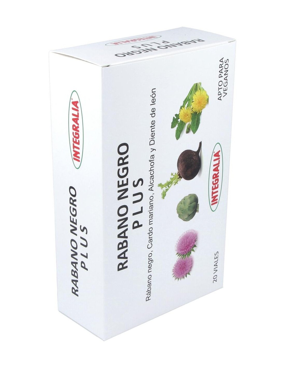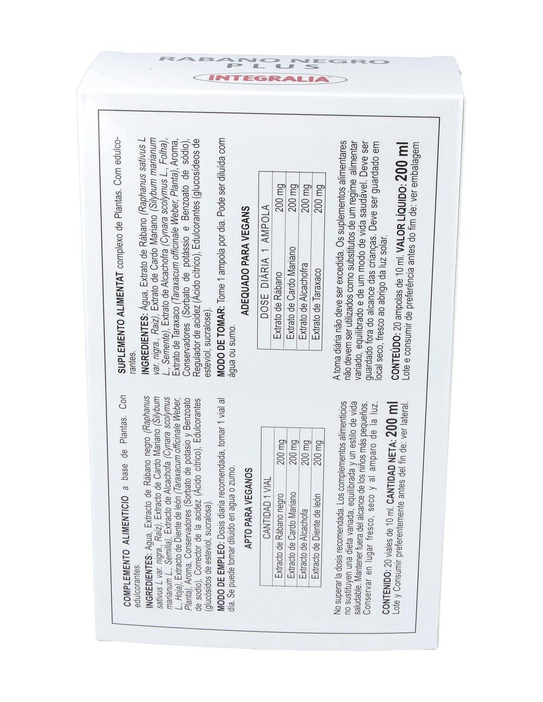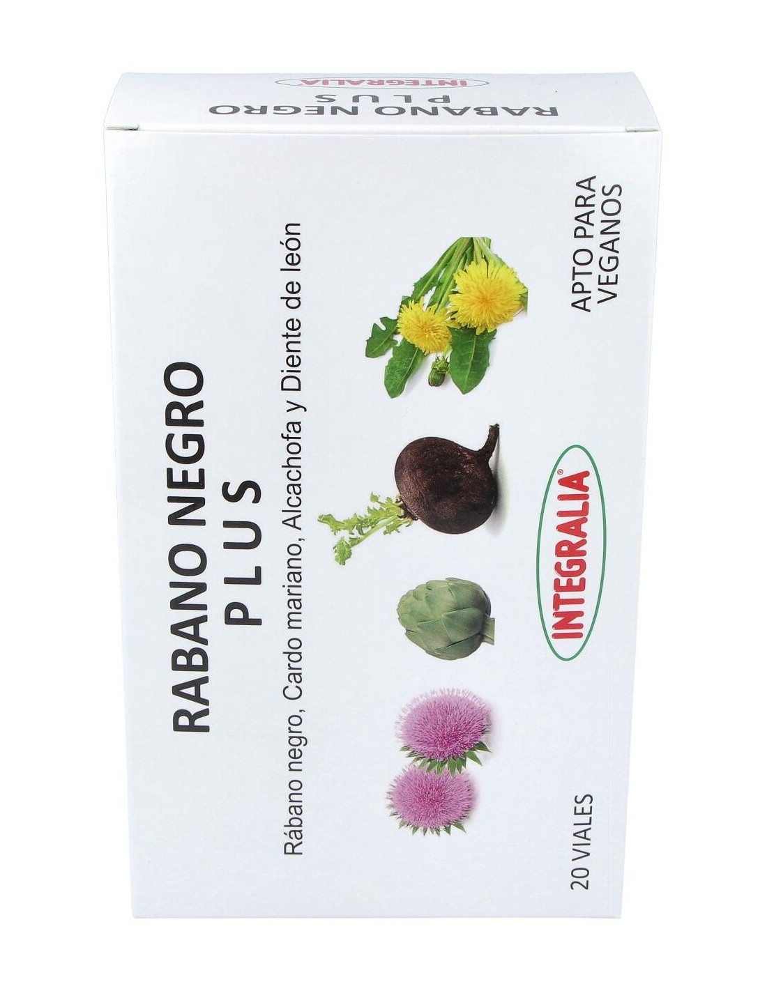 El Rabano Negro Plus 20 Viales de Integralia es un complemento natural para personas que buscan apoyar la función hepática, formulado con extracto concentrado de rábano negro para favorecer la digestión y el bienestar general.