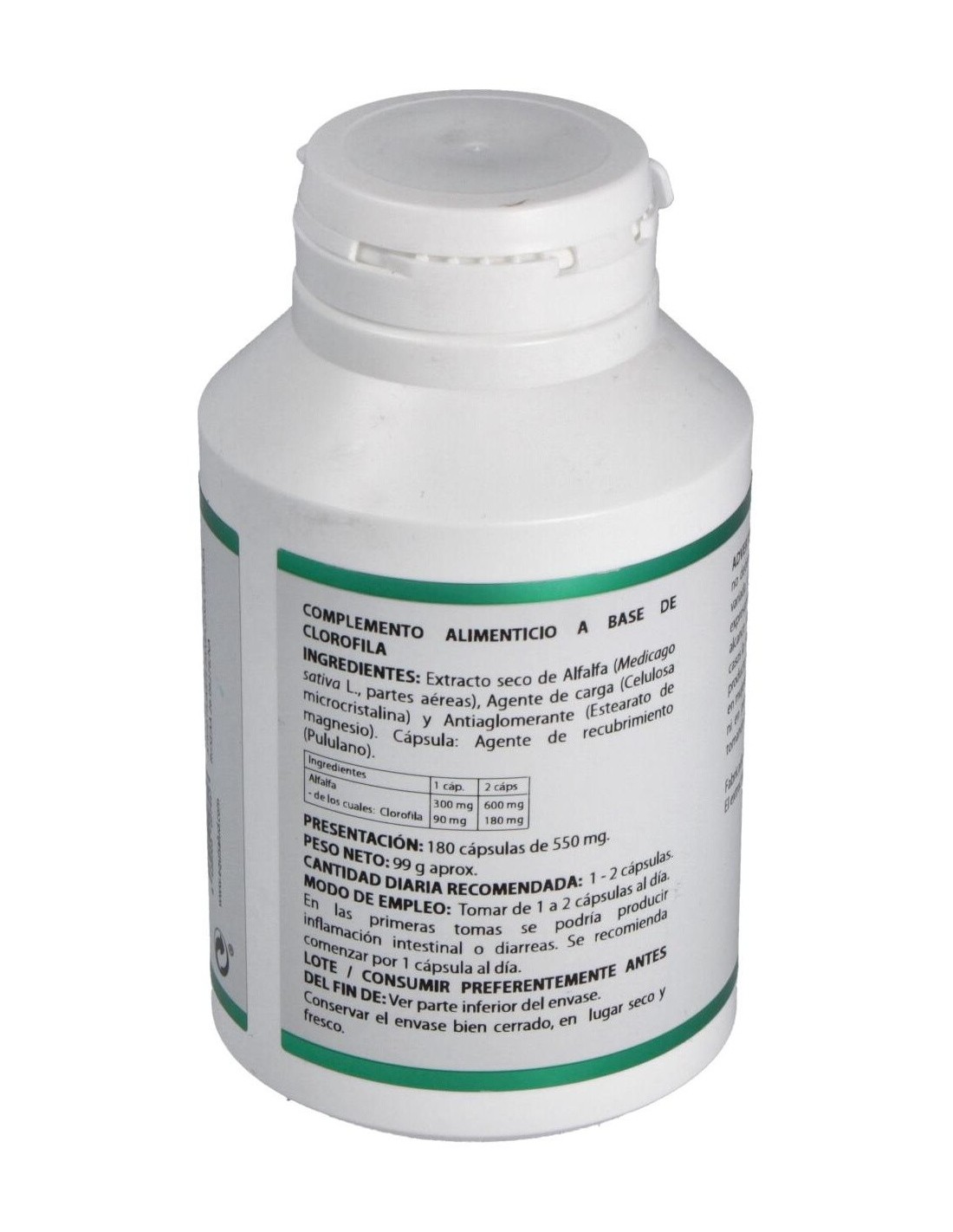 Holofit Clorofila 180 Cáps es un complemento alimenticio formulado a base de clorofila de alfalfa. Esta planta contiene vitaminas del grupo B, A, C y E, y minerales como el calcio, cobre, cromo, hierro, magnesio, selenio y zinc. Además posee gran contenido en proteína vegetal.