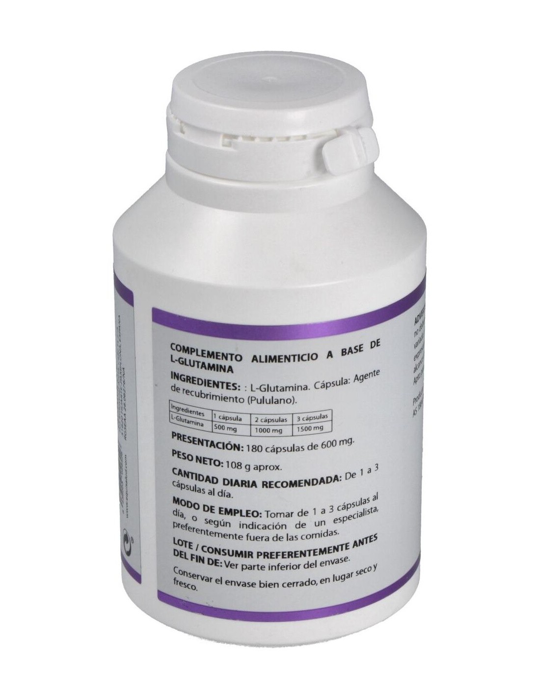 Complemento alimenticio a base de L-glutamina. Este aminoácido es una fuente de carbono y nitrógeno, por lo que es importante para la formación y mantenimiento de los músculos, y también combate la acumulación de grasa, puesto que puede transformarse en glucosa en los riñones sin interferir con los valores del glucagón ni la insulina.