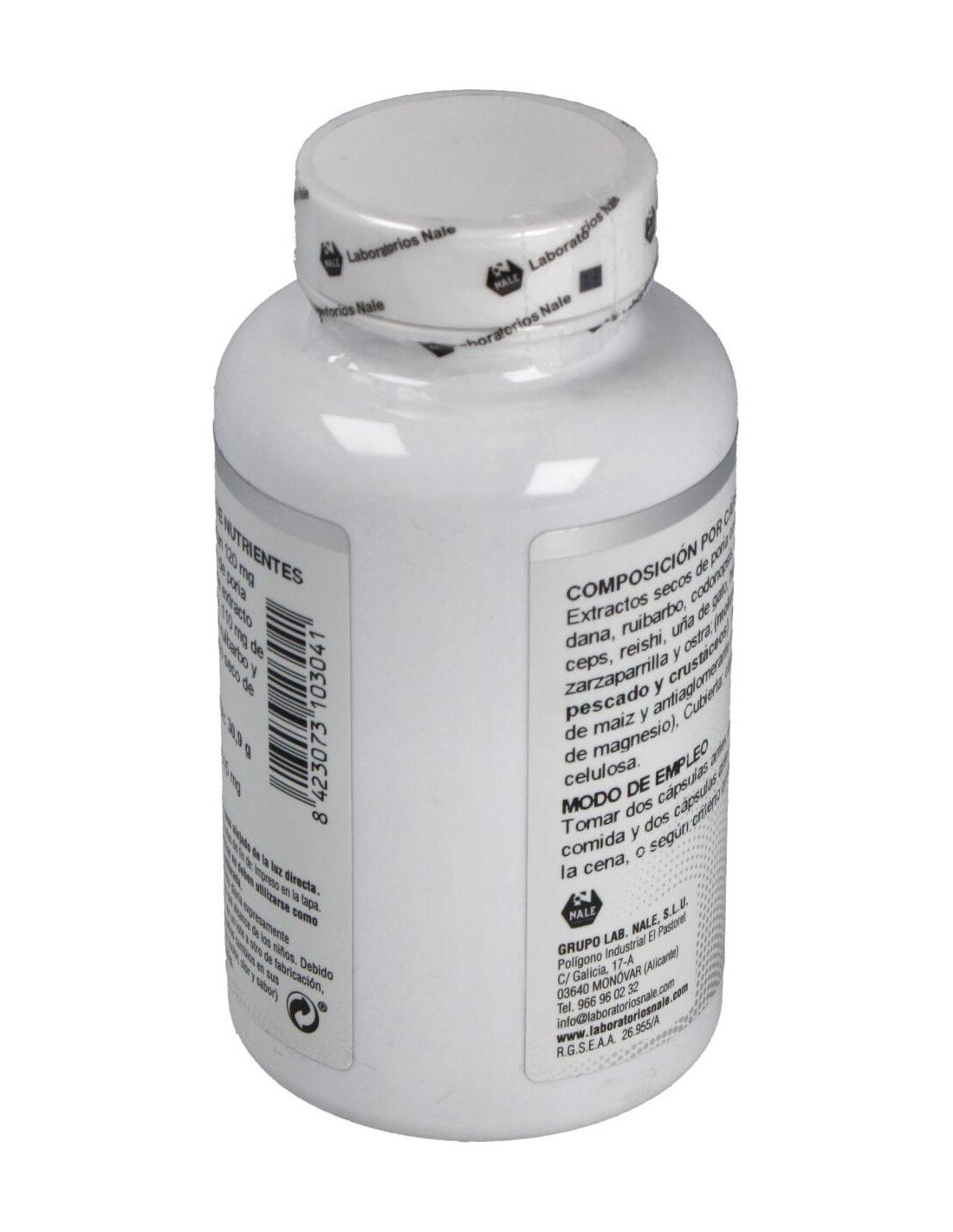 Extractos secos de: Poria cocos: Bardana: Zarzaparrilla: Ruibarbo: Uña de gato: Bupleurum chinense: Reishi: Cordyceps: Ostra: Codopnosis. Almidón de maíz, estearato de magnesio.