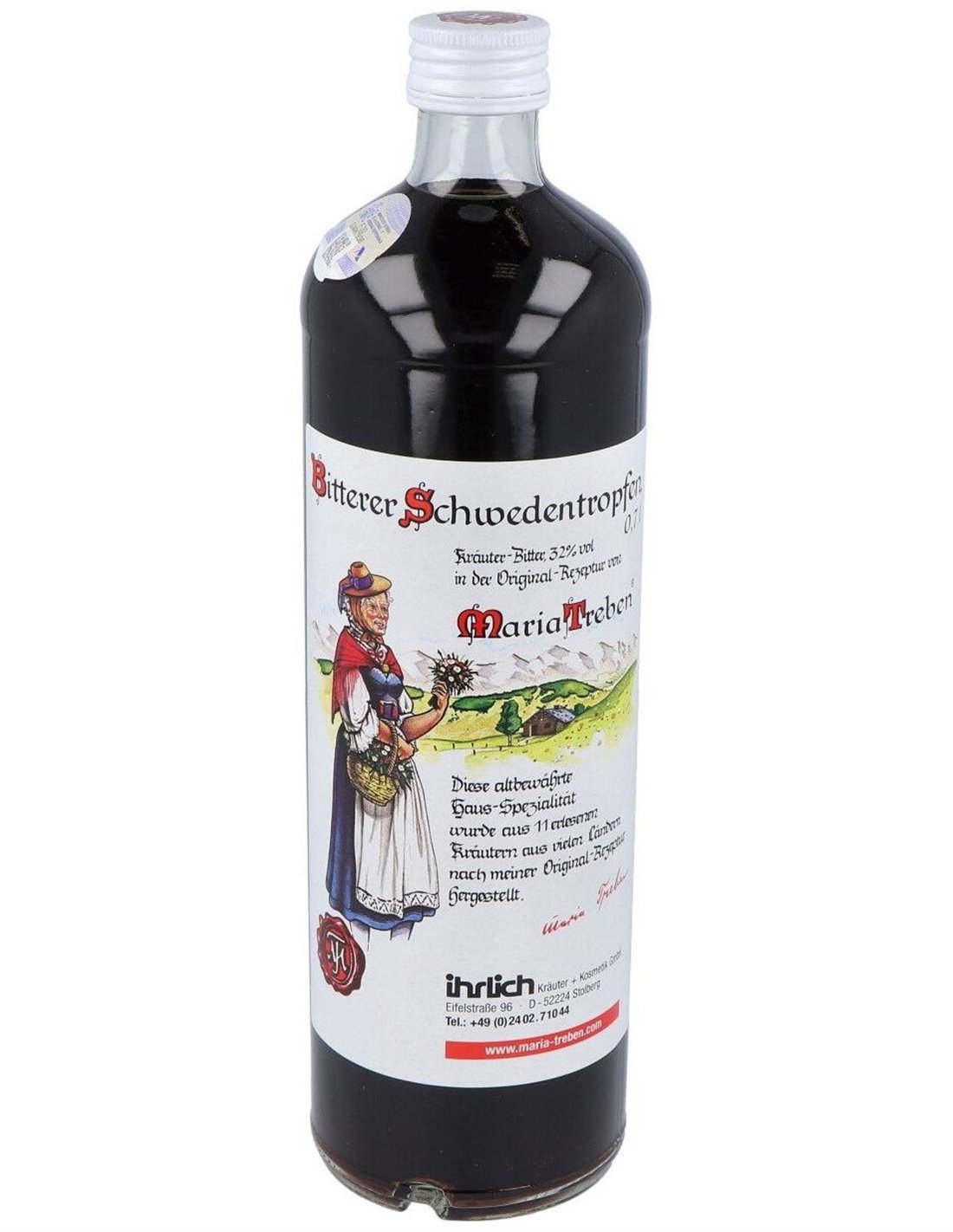 Maria Treben Amargo De Hierbas Suecas 700Ml. de Maria Treben es una fórmula tradicional elaborada a partir de una mezcla específica de hierbas seleccionadas, pensada para quienes buscan una opción natural para complementar su bienestar diario. Este producto está dirigido a personas interesadas en remedios herbales con una preparación basada en métodos clásicos.