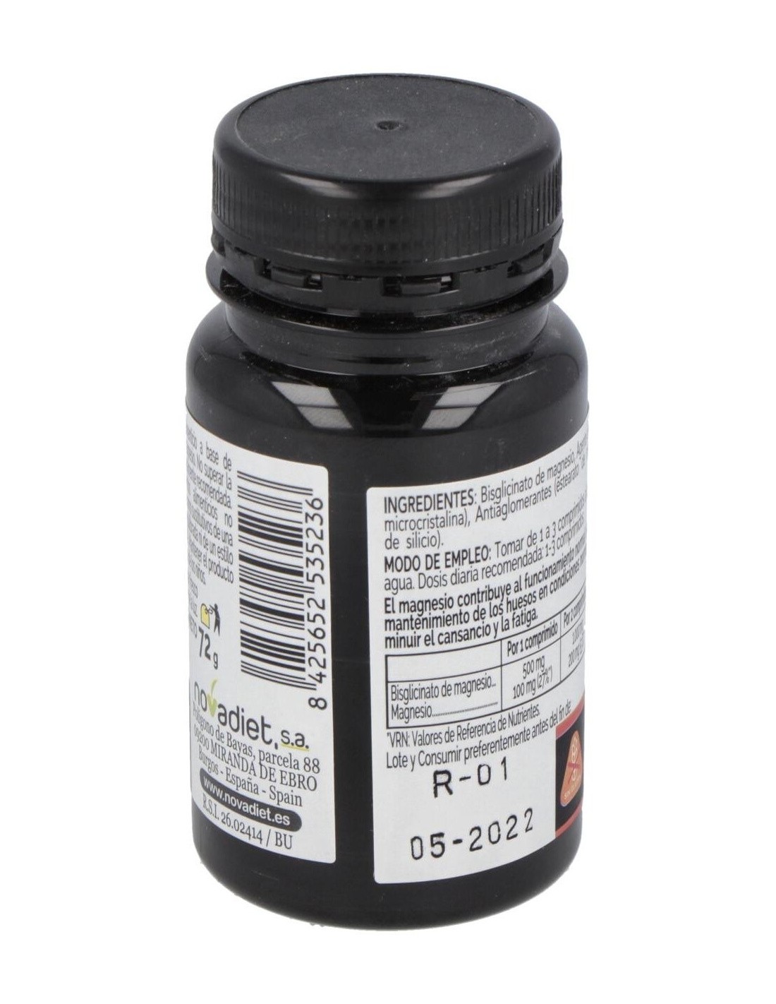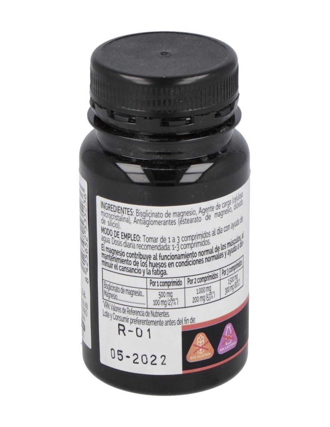 Bisglicinato De Magnesio, Agente De Carga (Celulosa Microcristalina), Antiaglomerantes (Dióxido De Silicio, Estearato De Magnesio).