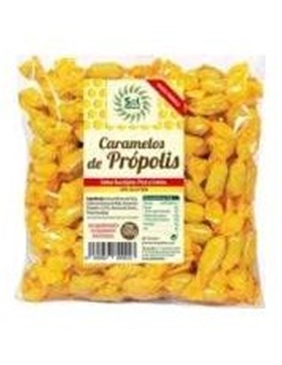 Azúcar moreno de caña, Jarabe de glucosa de Maíz, Extracto de Propóleo (1,5%), aromas de Eucalipto, Pino y Limón.