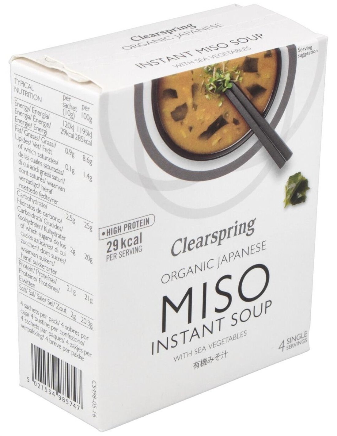 Elaborada con dos variedades de miso y dos tipos de vegetales marinos. Alimento rico en proteínas y vegano.