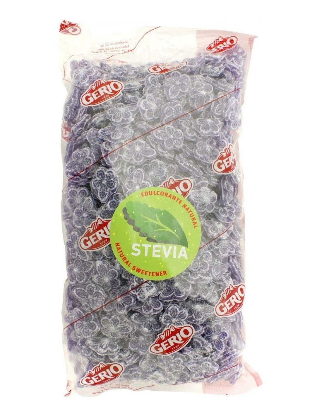 Caramelo duro con edulcorantes, forma y sabor de violeta. Sin gluten y sin azúcar.