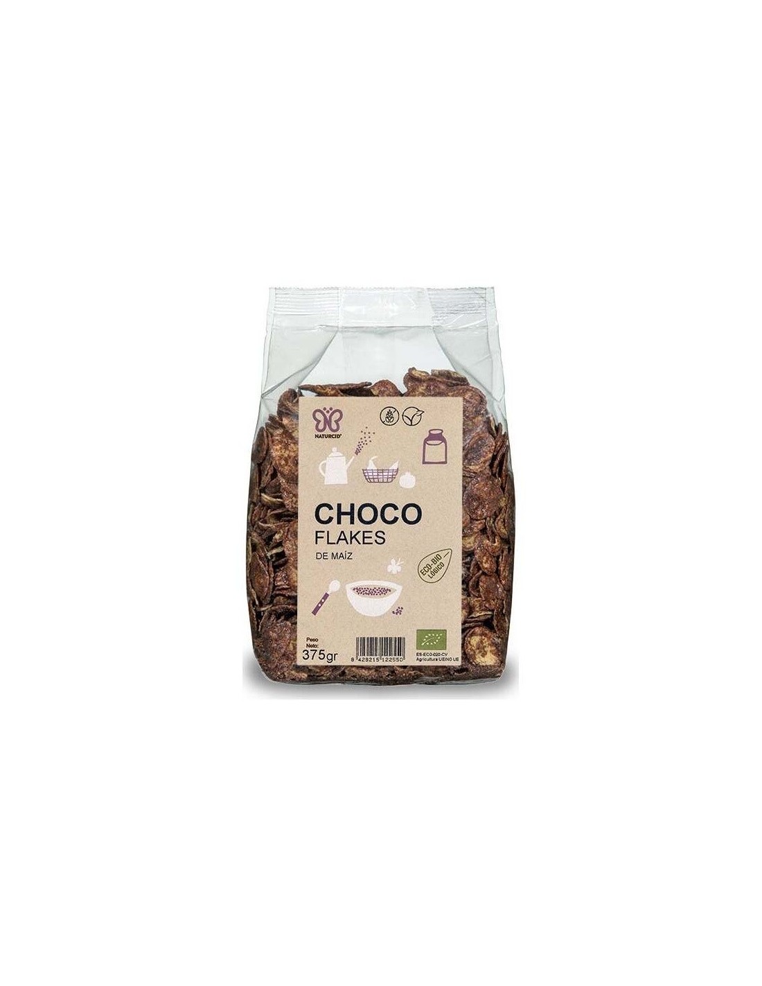 Copos de maíz crujientes con cacao. Alto contenido en fibra. Fuente de proteínas.