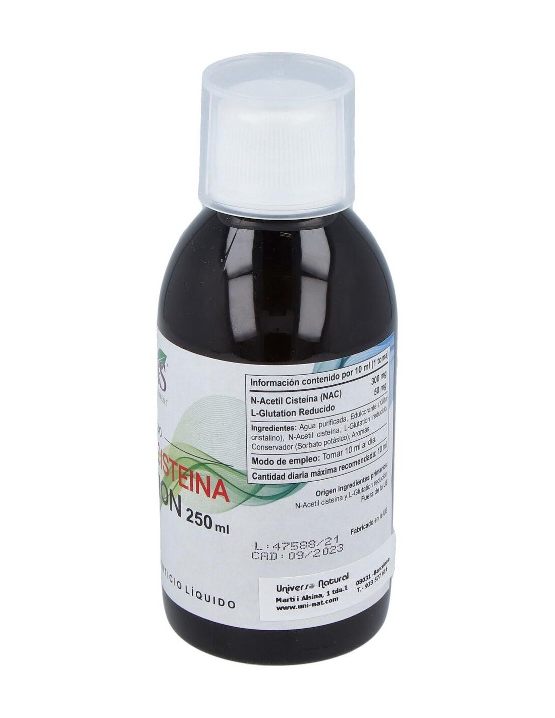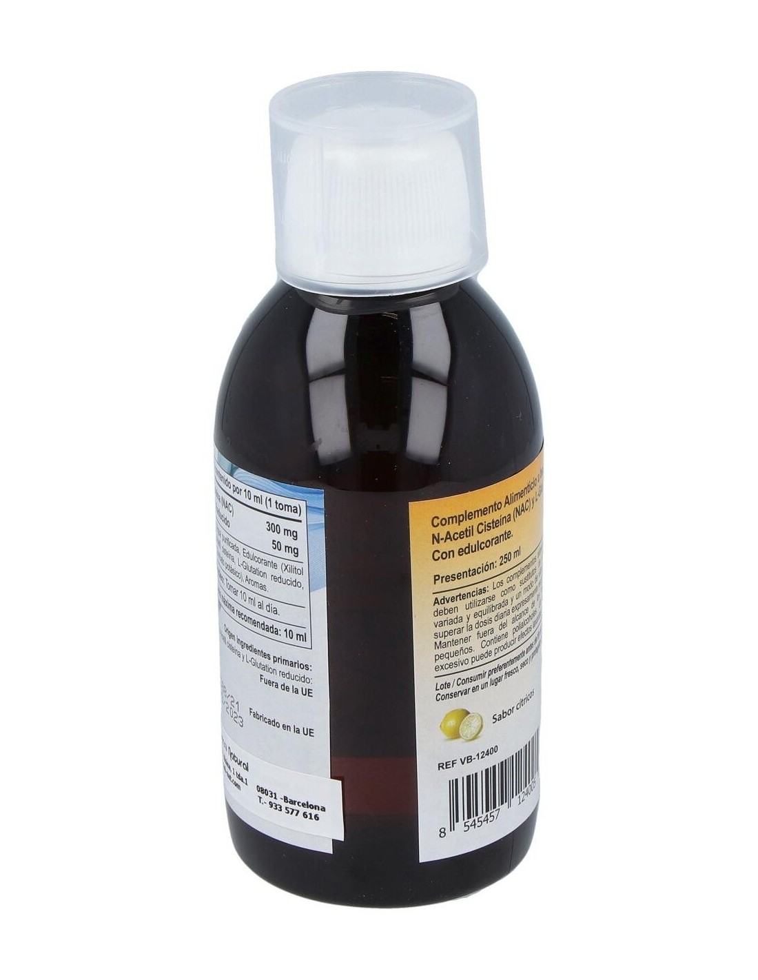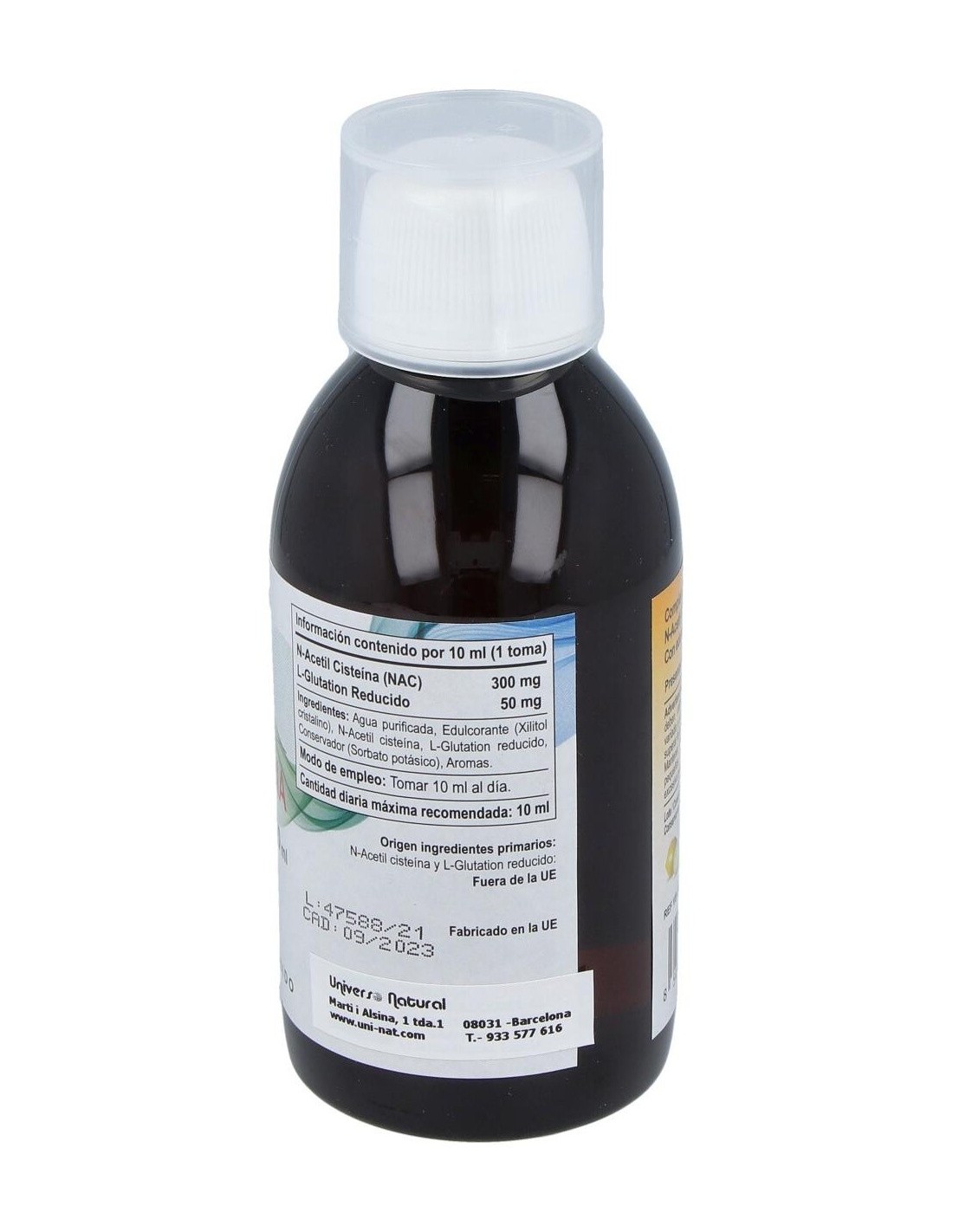 Agua purificada, xilitol cristalino, N-Acetilcisteina (NAC), L-glutation reducido, sorbato potásico, aromas.