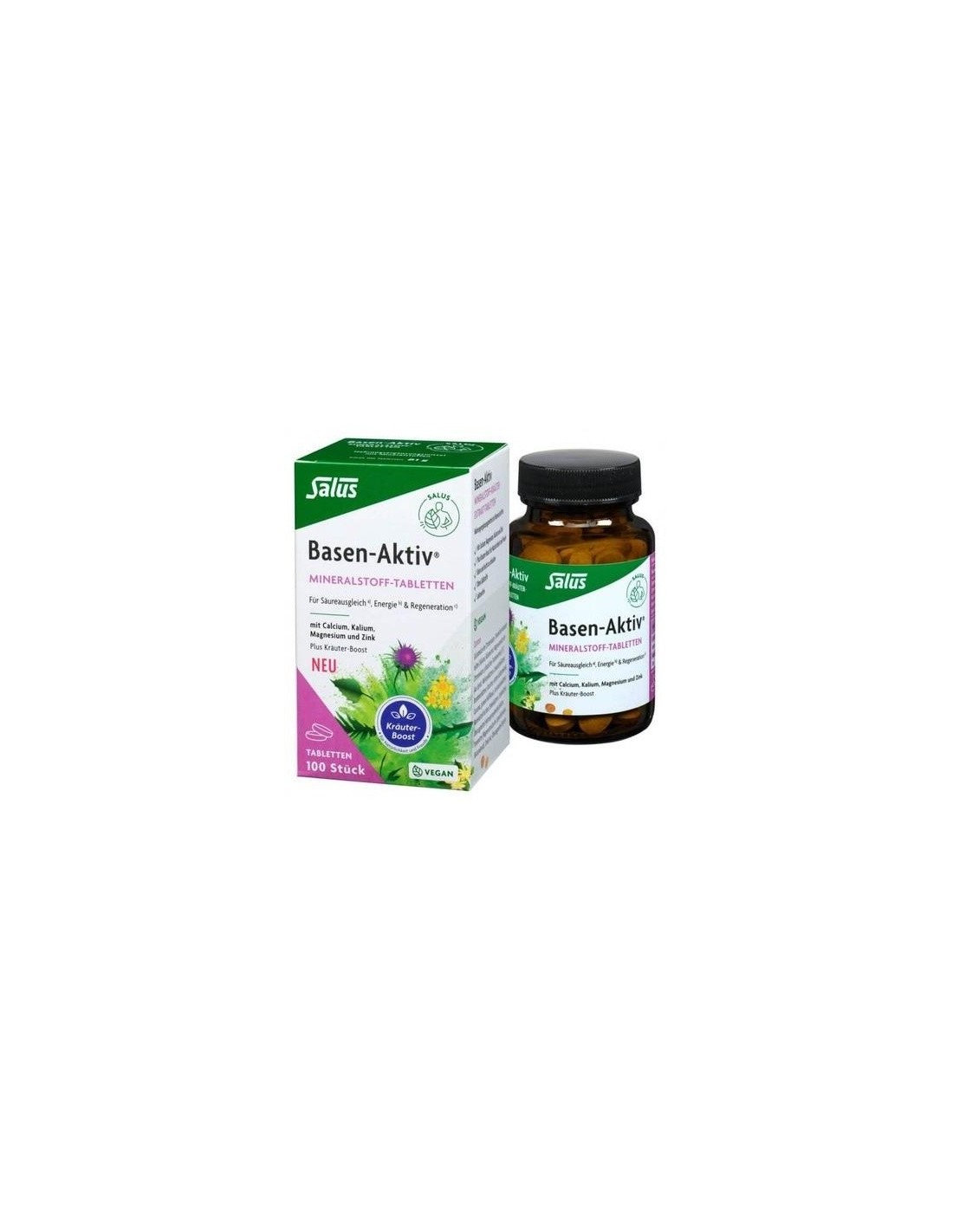 Salubase-Aktiv de Salus es un complemento alimenticio que contiene una mezcla de sales minerales y extractos de plantas que actúan en sinergia para contribuir a un metabolismo ácido-base normal. Producto apto para veganos.
