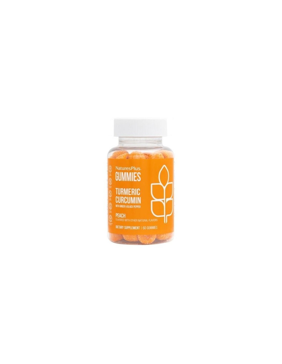 Complemento alimenticio de cúrcuma con jengibre y pimienta negra, para una correcta absorción y máxima actividad, en forma de gominolas. El extracto de cúrcuma valorado en curcumina apoya el normal mantenimiento de músculos y articulaciones, así como la digestión y la normal función hepática. Este formato es ideal para niños, personas con dificultades para tragar comprimidos y polimedicados. Producto vegetariano y sin gluten. Sabor a melocotón.