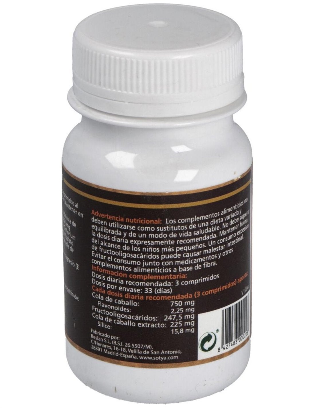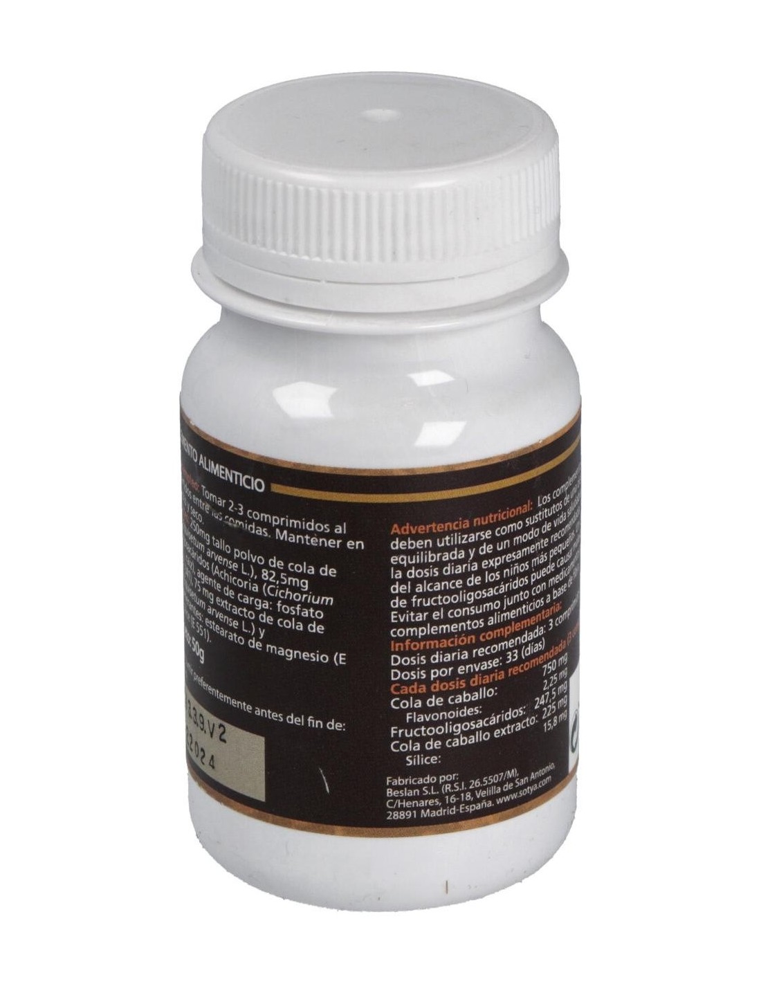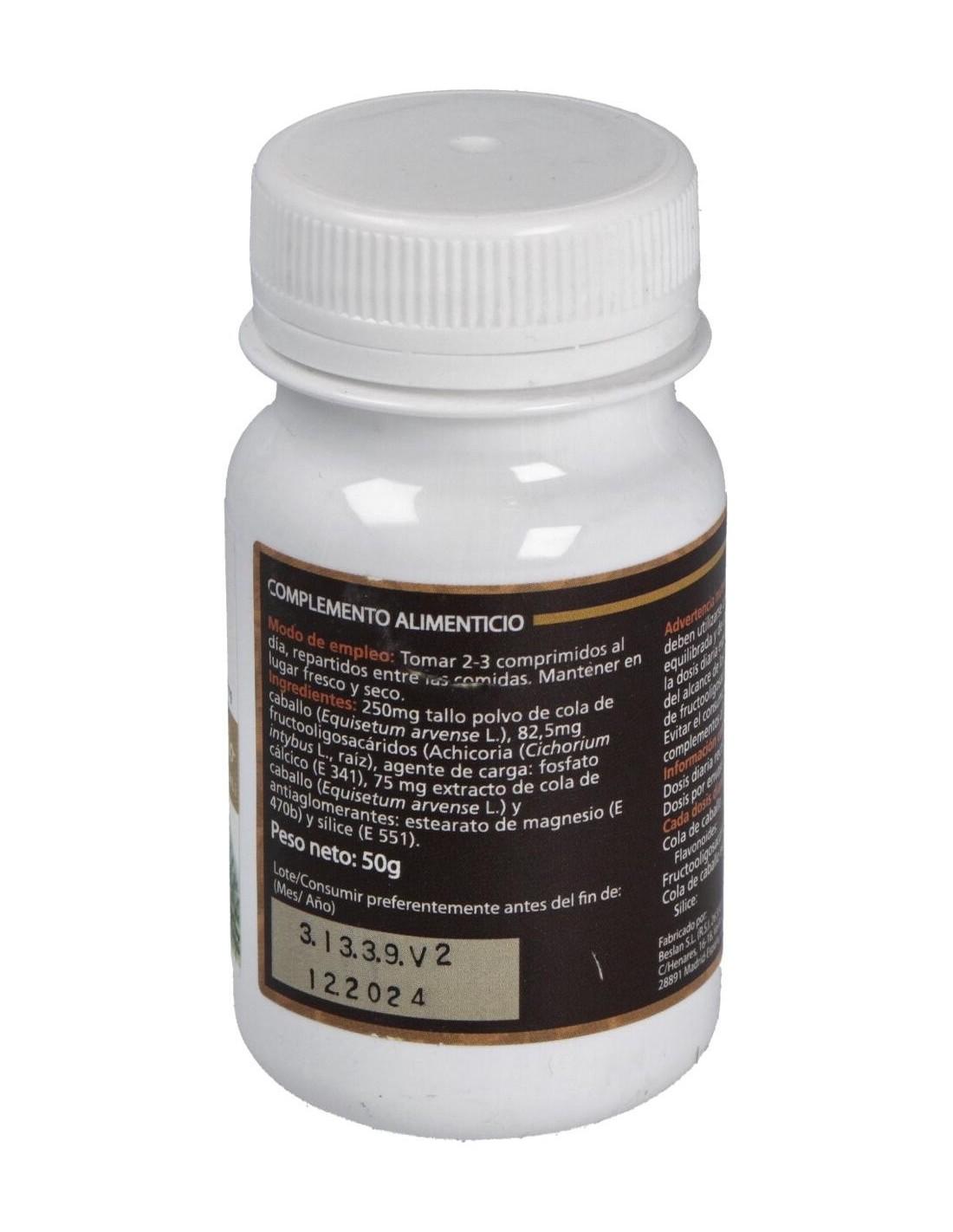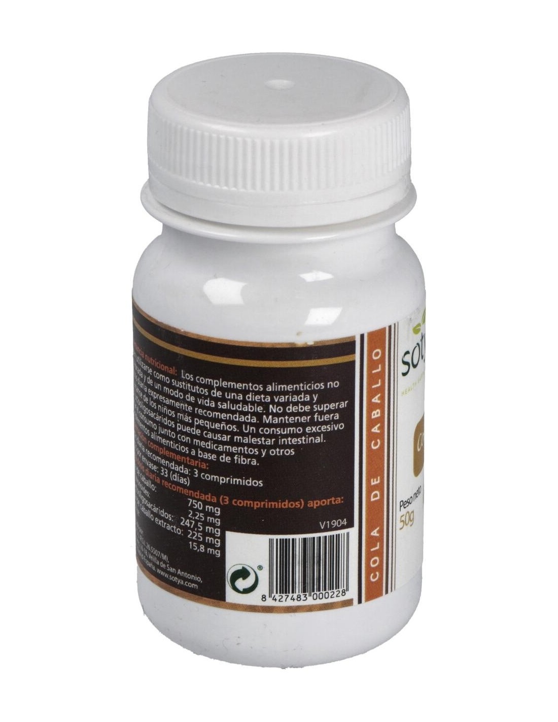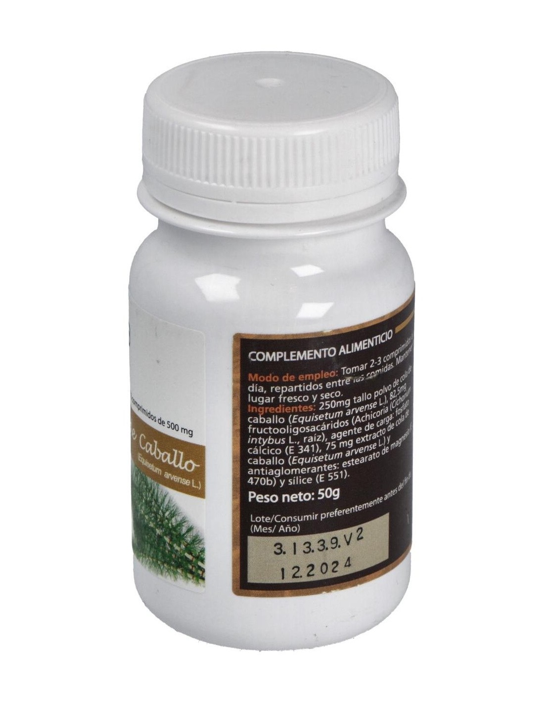 - Cada comprimido contiene 500 mg de extracto de cola de caballo, contribuyendo a una ingesta controlada y constante.