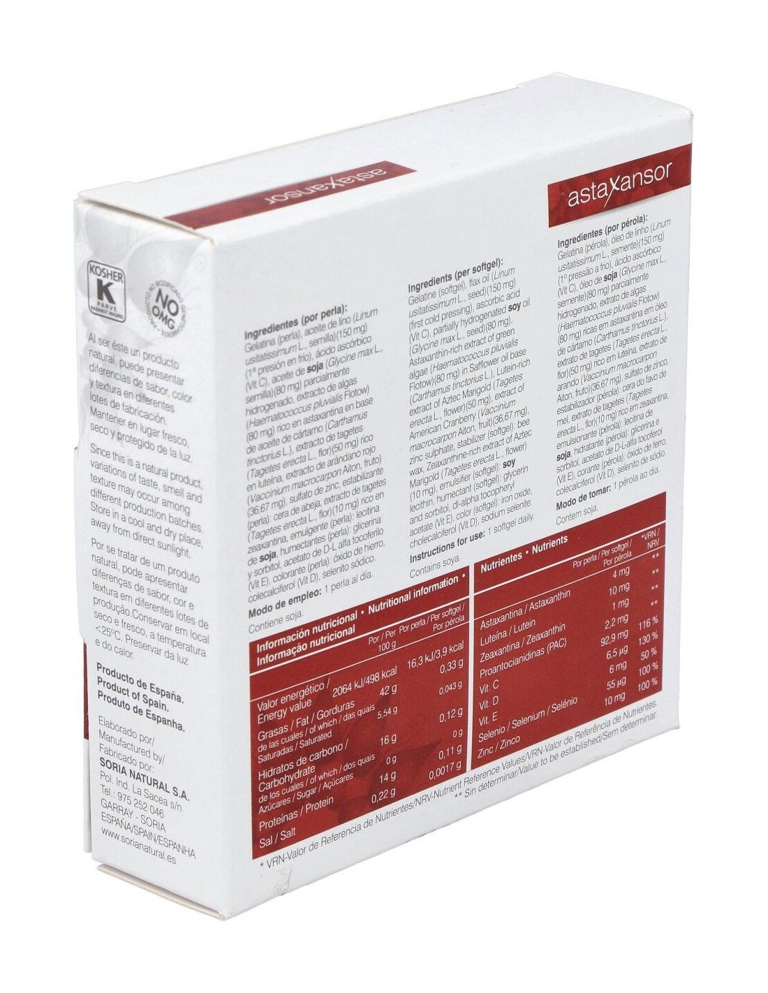 Astaxansor 30Perlas de Soria Natural es un complemento alimenticio diseñado para personas que buscan apoyar su bienestar diario mediante ingredientes naturales. Su formulación está pensada para quienes desean incorporar un aporte antioxidante en su rutina habitual.