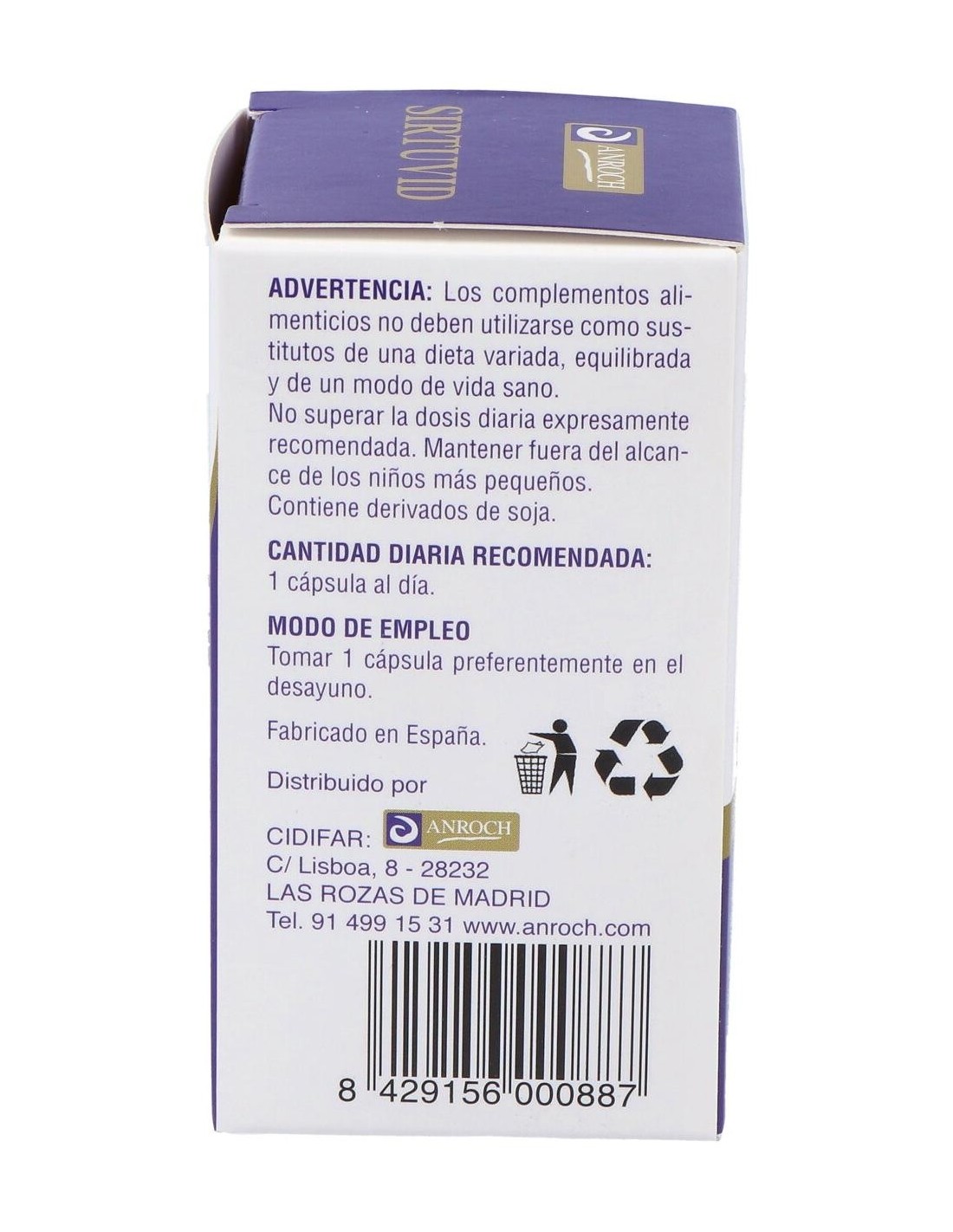 Tomar 1 cápsula al día, preferiblemente con el desayuno. Los complementos alimenticios no deben usarse como sustitutos de una dieta variada y equilibrada, y de un modo de vida sano.