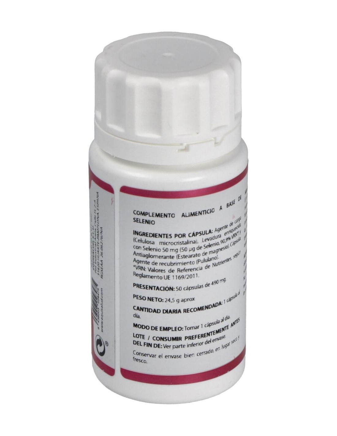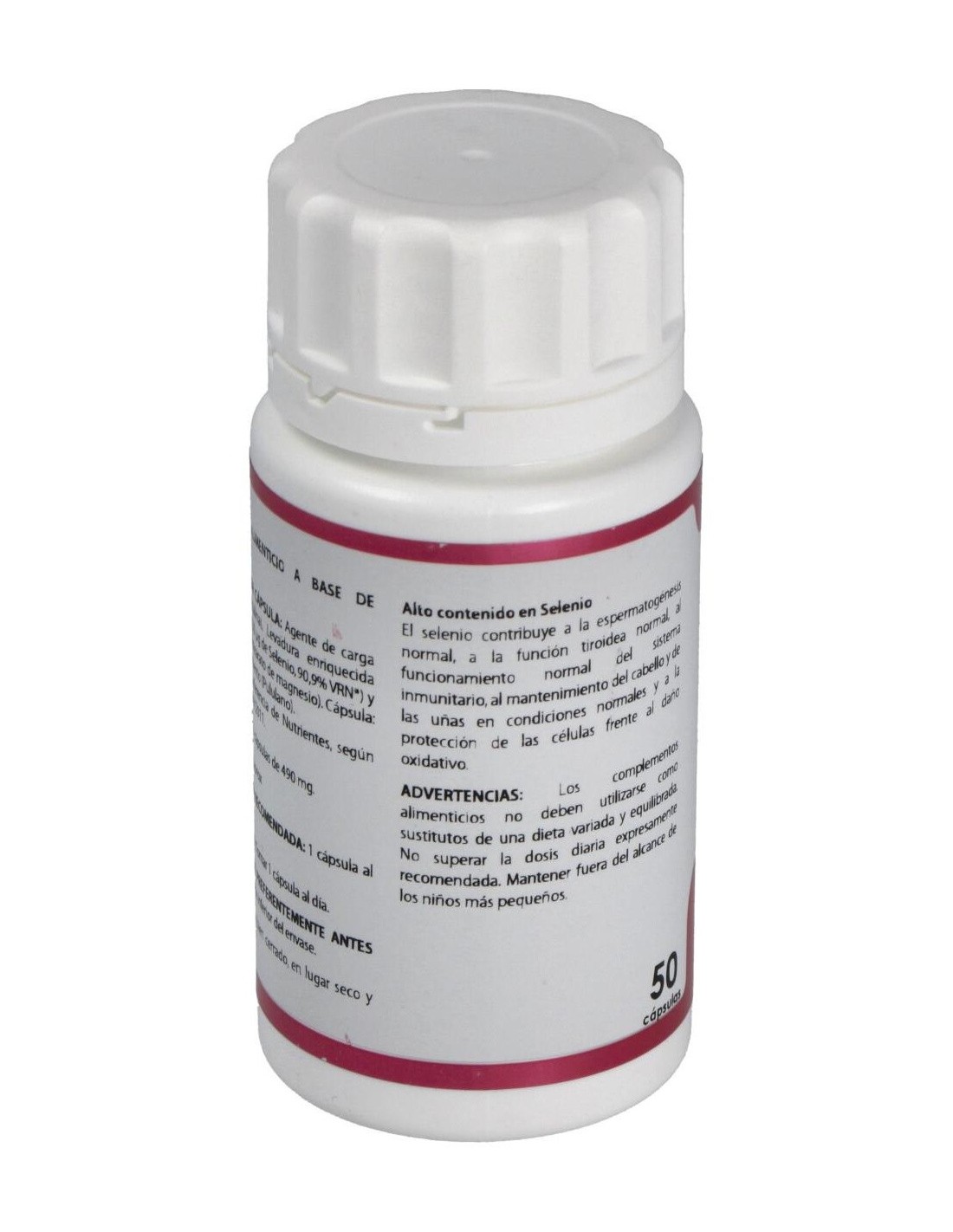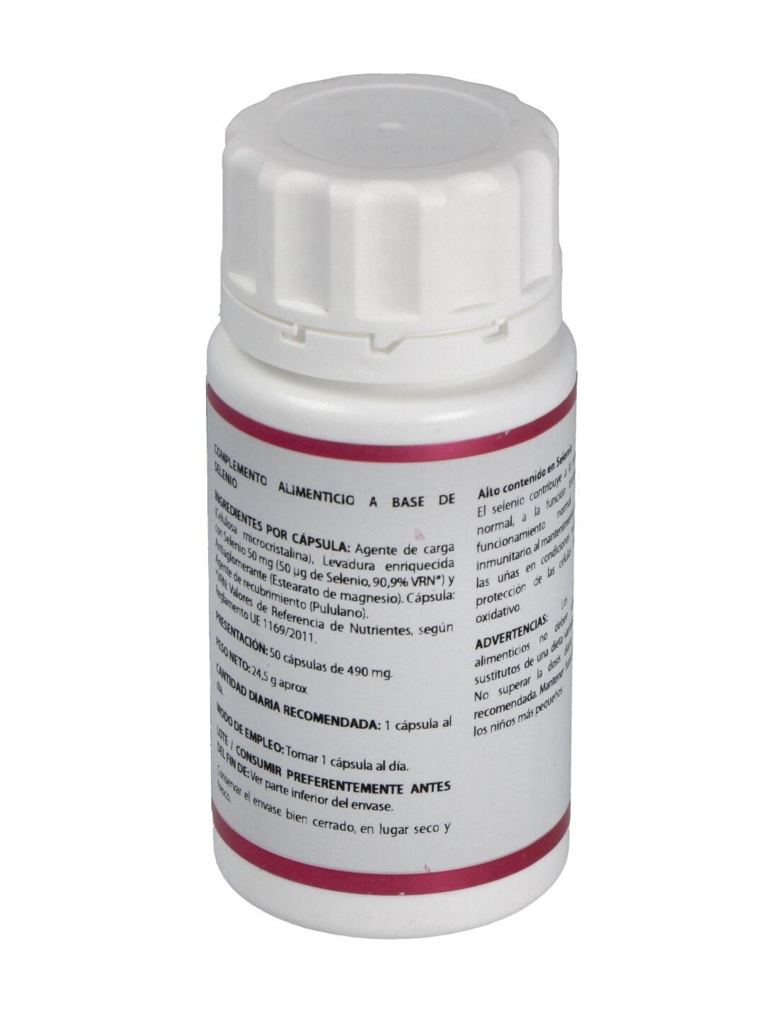 50 mg de levadura enriquecida con selenio (1.000 mcg de selenio/g) (cada cápsula aporta 50 mcg de selenio).
