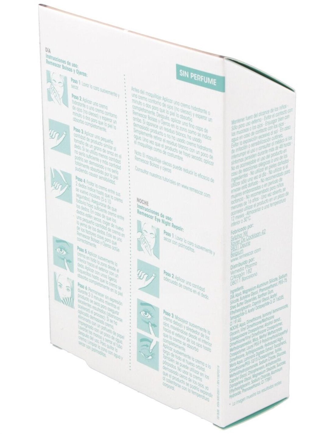 Ofrece un programa dual de día y de noche que se adapta a las necesidades cronobiológicas de la delicada piel alrededor de los ojos. Contiene Remescar Bolsas y ojeras para el día y Remescar Eye Night Repair para la noche.