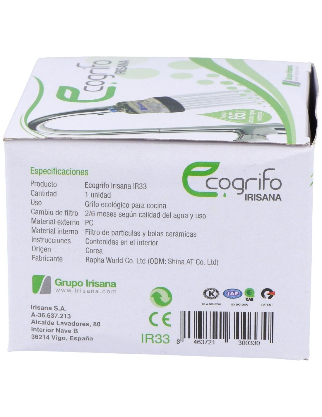 Ecogrifo de la marca Irisana, producto diseñado y elaborado para mejora la calidad del agua para cocinar, beber y limpiar.