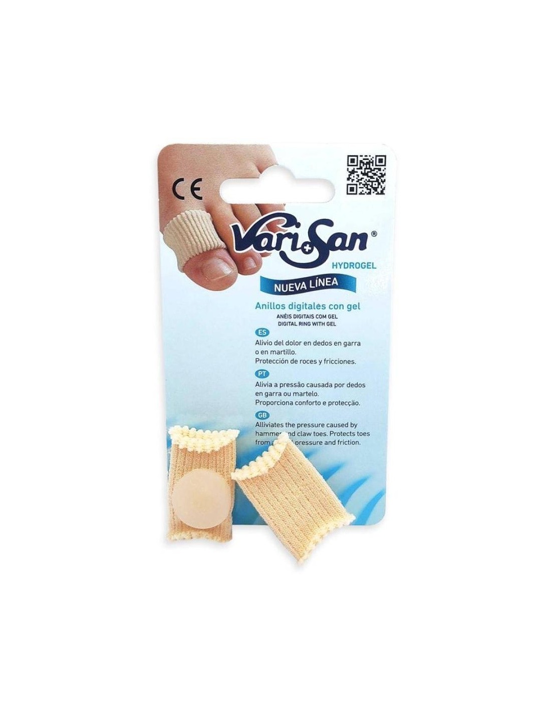 VARISANLos anillos digitales Varisan se utilizan para proteger los dedos de manos o pies de cualquier herida, roce, heloma, dureza, etc. En su interior, el gel polímero protege la zona y proporciona una sensación de masaje y confort. El tejido elástico de su parte exterior hace que el producto se adapte perfectamente al dedo además de otorgar un extra de protección contra cualquier roce. La polivalencia de este producto permite utilizarlo para aliviar síntomas de patologías de los pies relacionadas con la alineación como puede ser los dedos en garra y martillo.