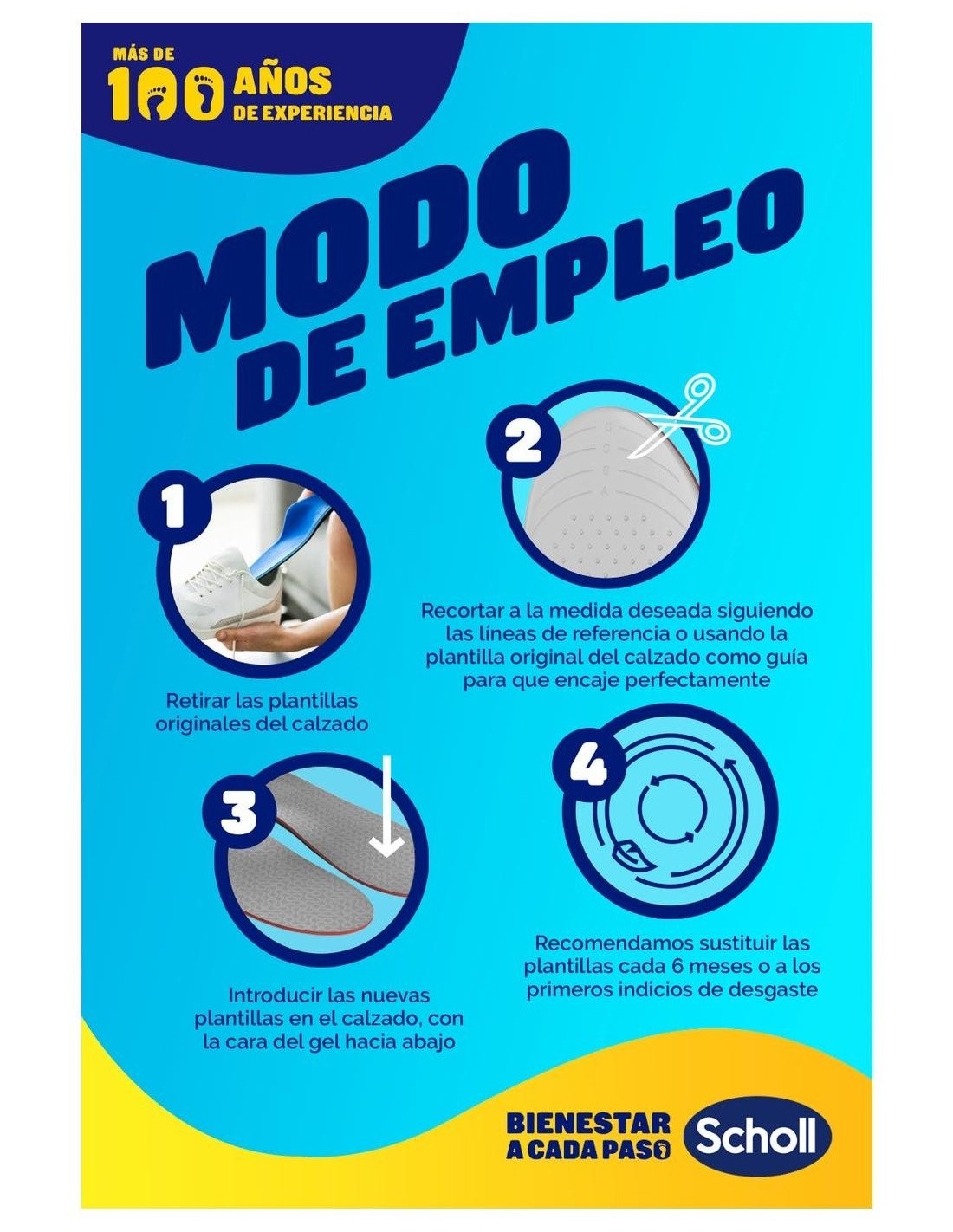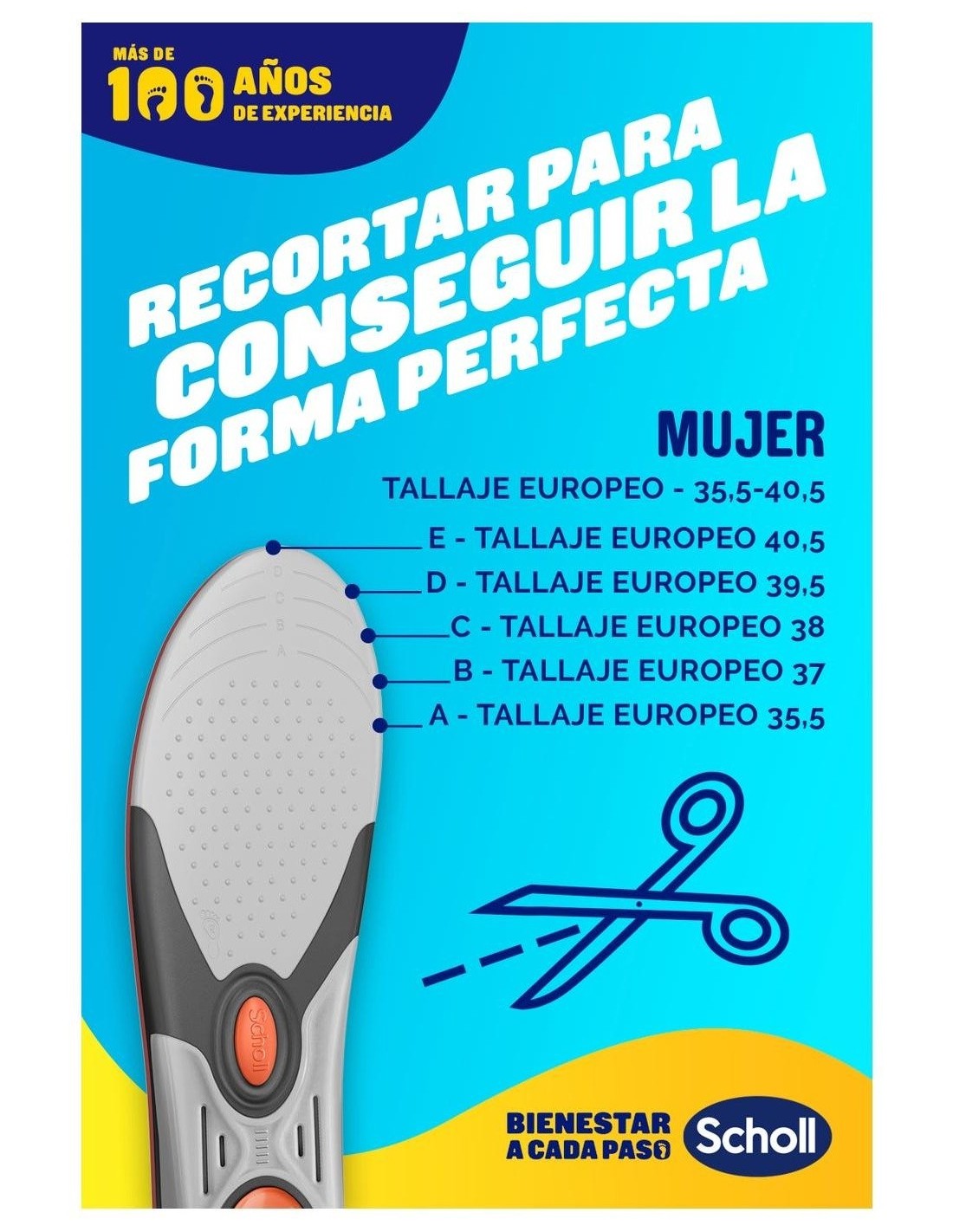 Introducir las plantillas LiquiFlex de Scholl con la cápsula LiquiFlex hacia abajo.\ La plantilla debe quedar plana. \ Puede ser necesario recortar la plantilla un poco más para que se ajuste a la perfección.