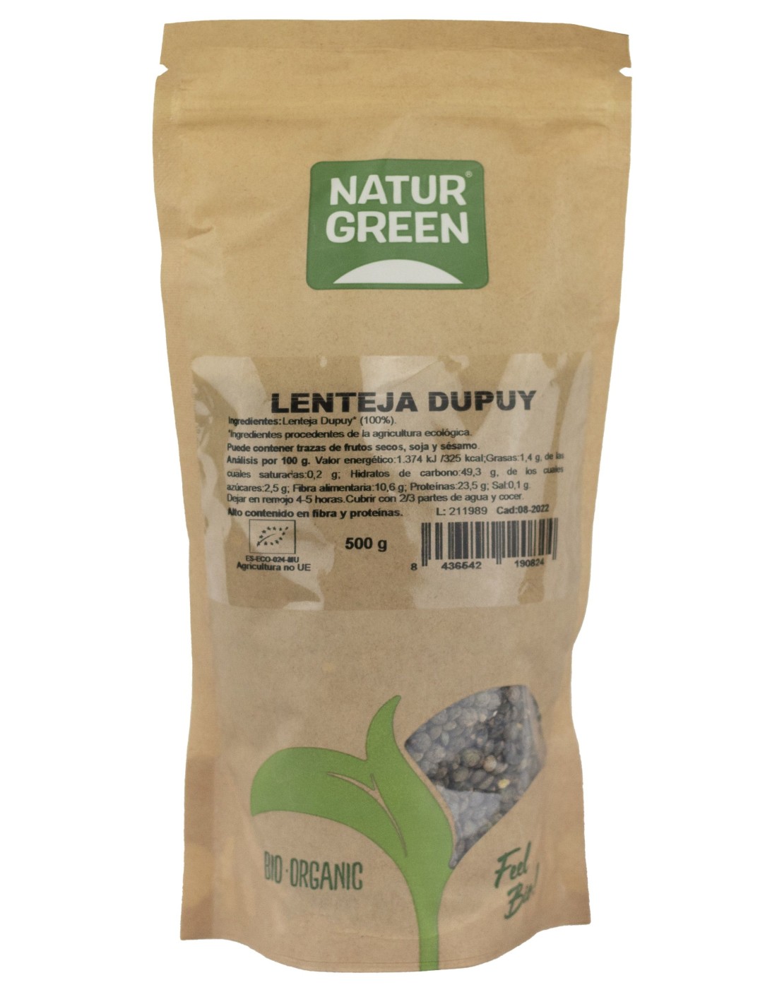 - Lentejas Dupui cultivadas de forma orgánica, sin uso de pesticidas ni fertilizantes químicos, lo que contribuye a una alimentación más natural.