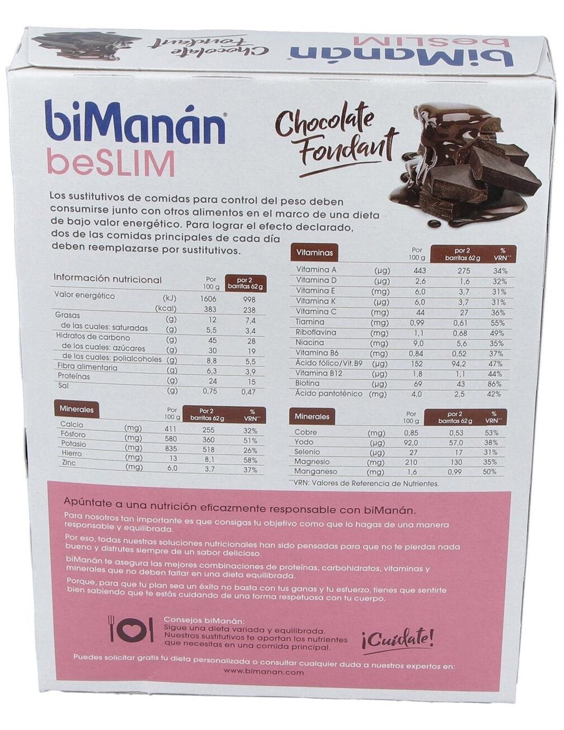 Las Barritas Chocolate Fondant 10Ud. de Bimanan están diseñadas para quienes buscan una opción práctica y sabrosa para complementar su alimentación diaria. Este producto es adecuado para personas que desean un aporte energético equilibrado con un sabor agradable y textura suave.