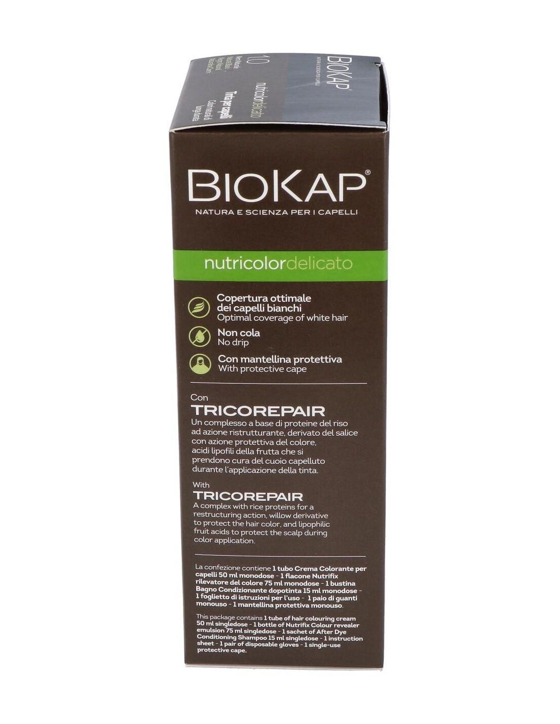 El Delicato 1.00 Negro Natural 140 ml de Biokap es un tinte capilar para quienes buscan un color negro natural. Proporciona cobertura uniforme gracias a su fórmula delicada y respetuosa con el cabello.